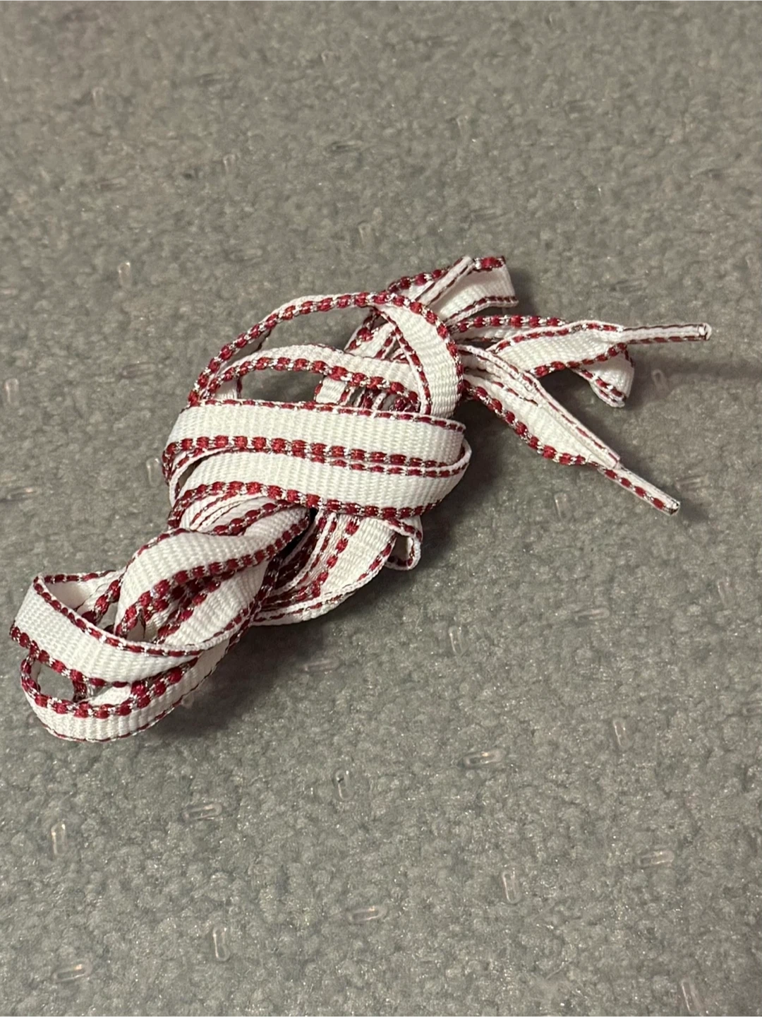 Selling a pair of white shoelaces with red accents! They are brand new and would be perfect for adding a pop of colour to your shoes