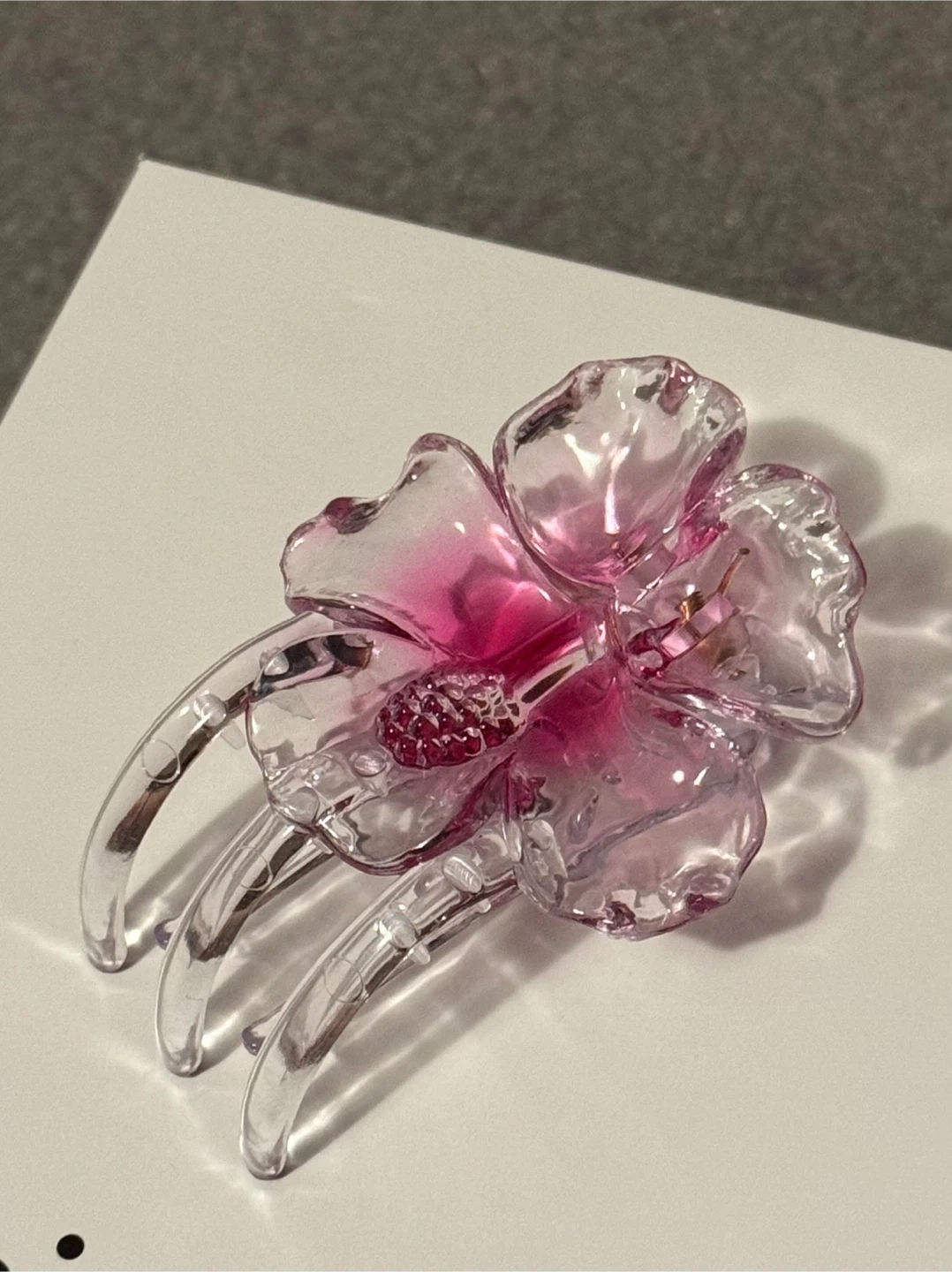 Selling a cute flower hair claw clip! It's in great condition and has a lovely pink colour. Perfect for adding a touch of fun to any hairstyle