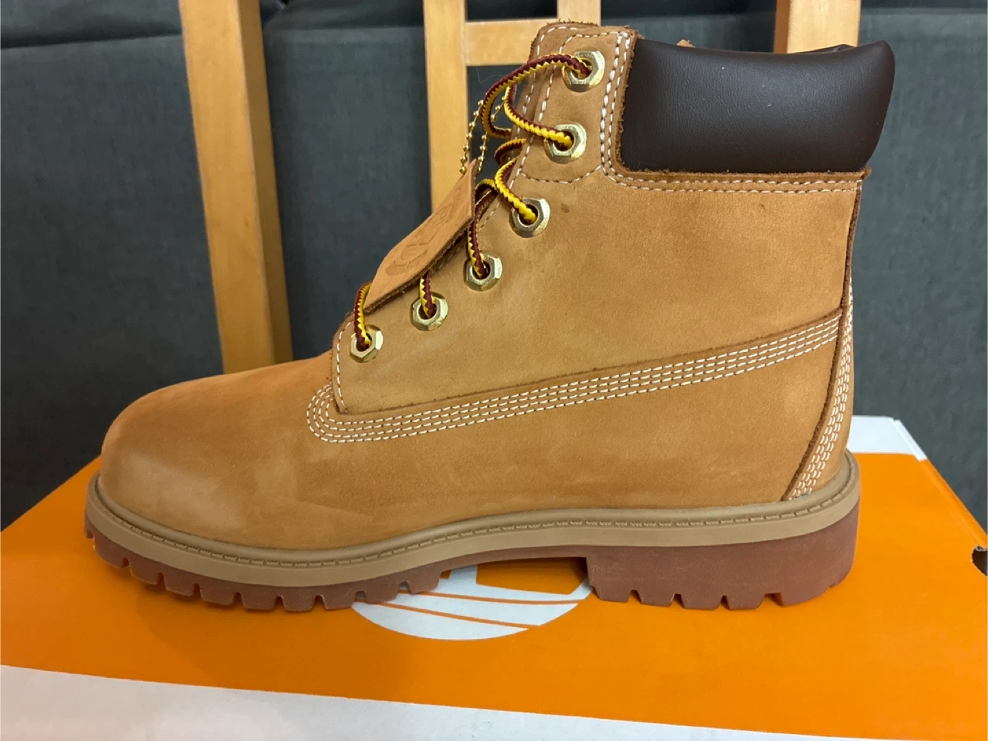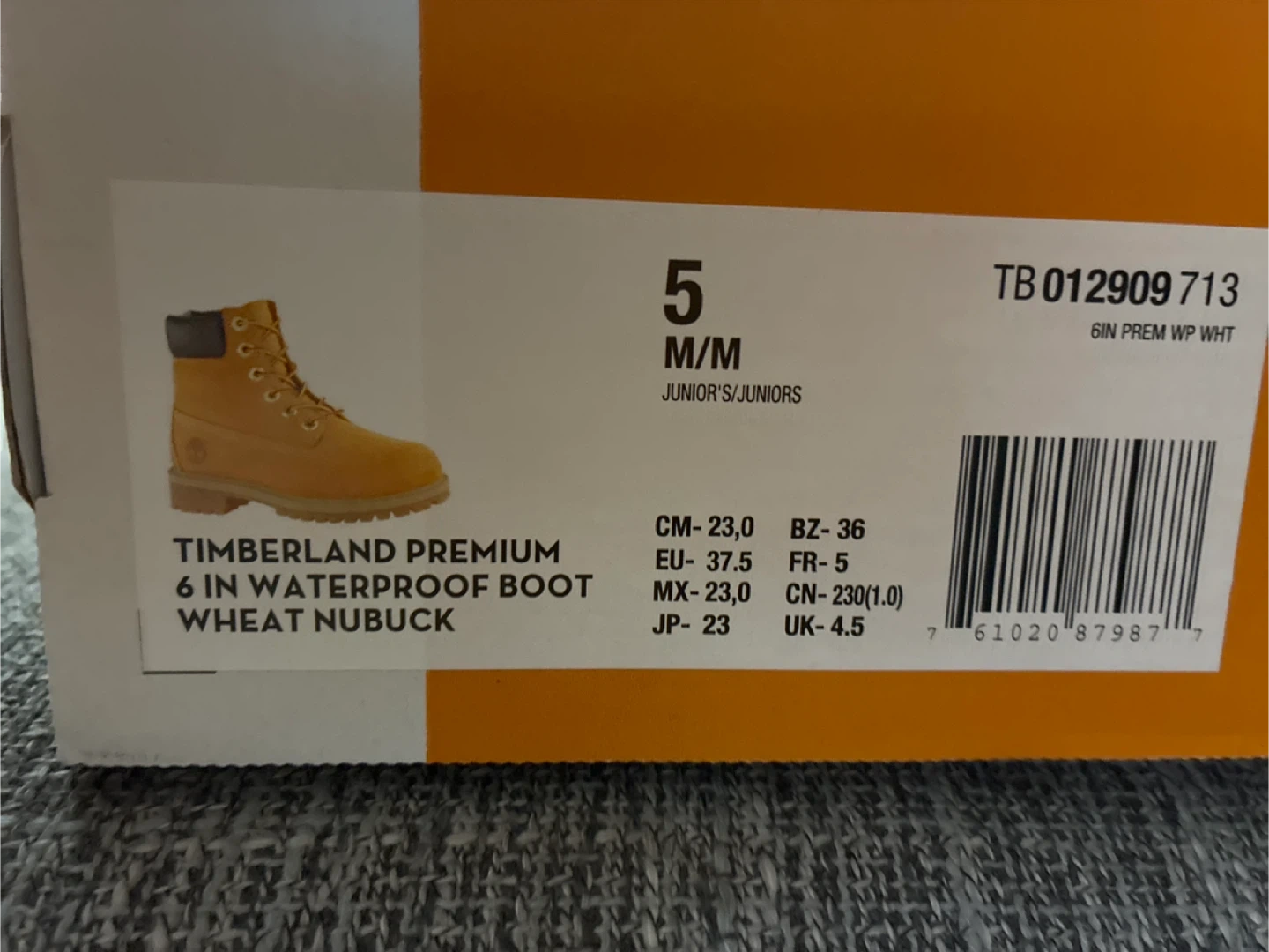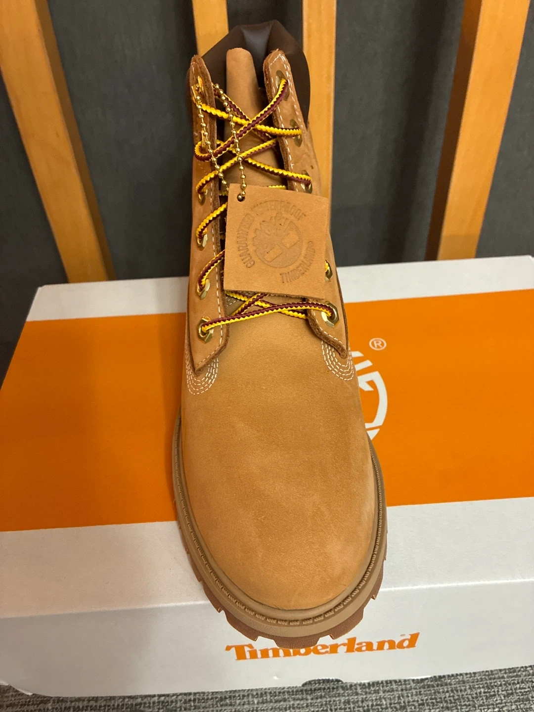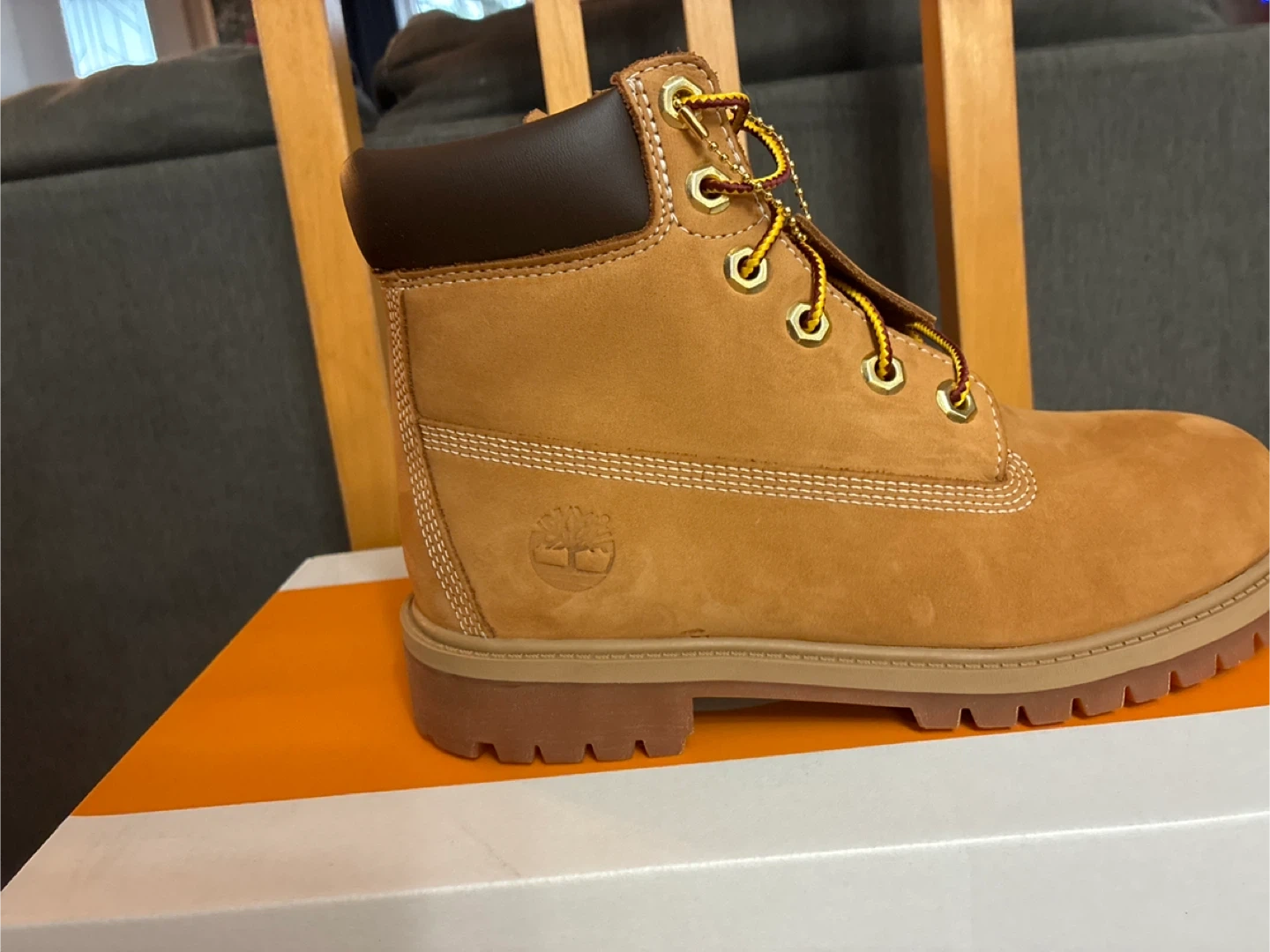 I'm selling a pair of brand new Timberland Premium 6-inch waterproof boots in wheat nubuck! They are size Men’s 5, Women’s 6.5 These boots are ready for anything, keeping feet dry and comfortable.
