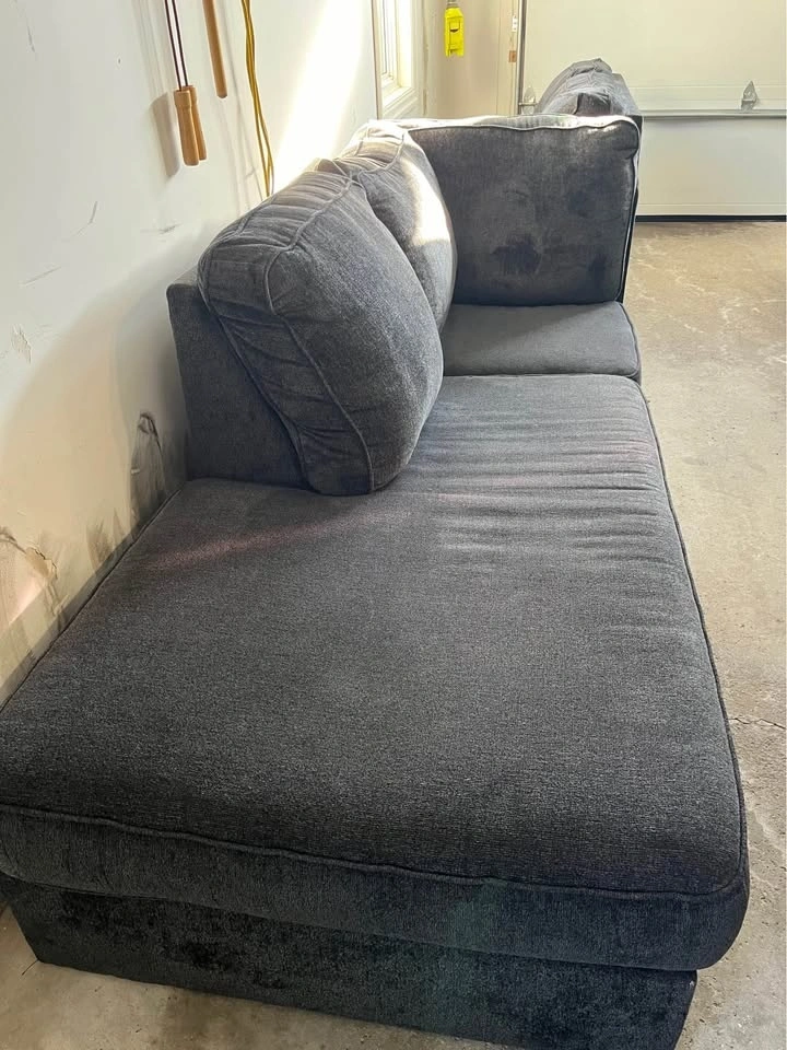 Grey sofa for $950. Very clean and minimally used. Cushions included. You are responsible for relocation. Extension length: 2.33 m. Body length: 1.95 m. Width: 91 cm.