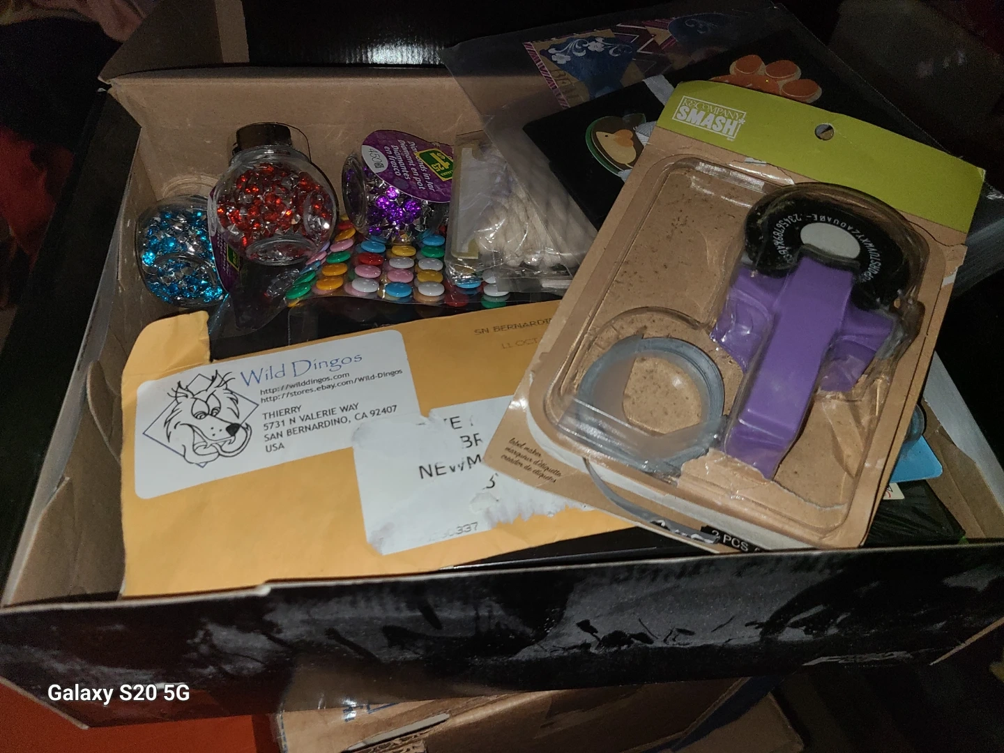 each shoe box contains new and partial kits craft items bits and pieces and odds and ends...for the person that when looking at item says 'I can make something with that' bought sight unseen no returns...I'm mentioning what the dominant items from boxes are