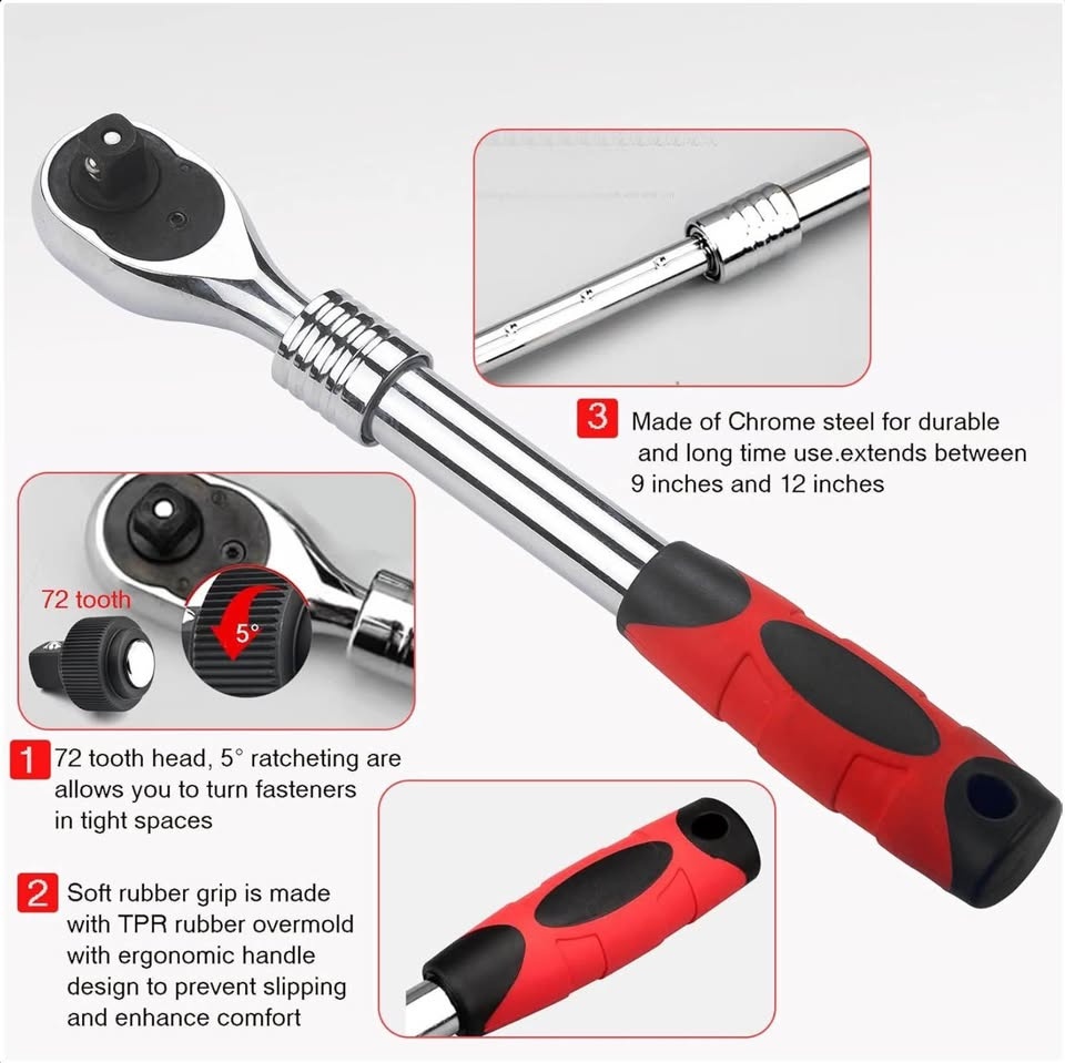 Extendable Ratchet Wrench - 3/8" Drive Flex Head
