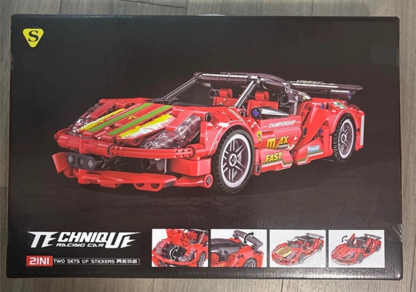Selling a brand new JIE STAR Technique Racing Car! This cool supercar building set is perfect for ages 6+. It comes with 433 pieces to build your own racing car, and it even includes two sets of stickers to customize your ride. Get ready for some building fun