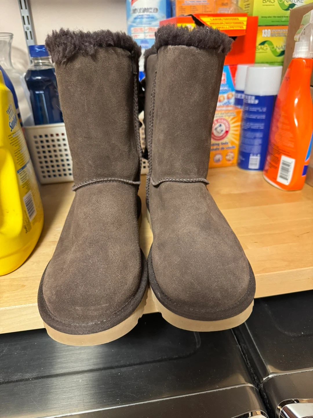 Selling a pair of UGG boots in a lovely brown colour! They're a size US 8. The boots have cute bows on the back. Perfect for keeping your feet warm and cozy during the colder months!
