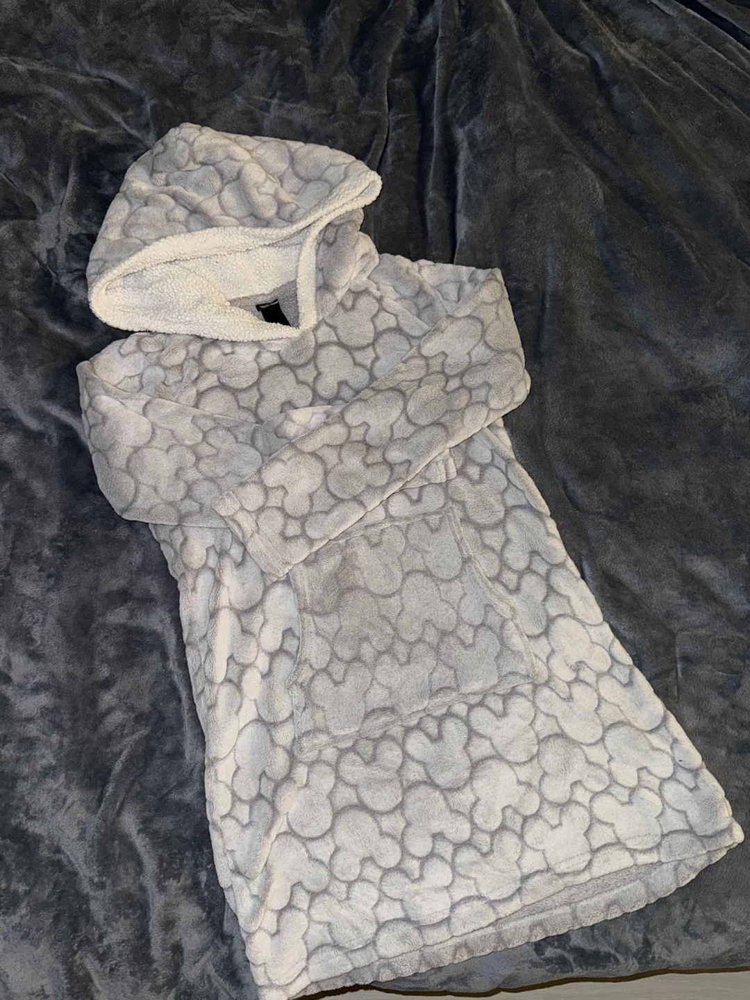 Cozy up with this Disney snuggle hoodie. It's a super comfy and warm way to stay snug during those chilly evenings. The grey colour and Mickey Mouse pattern make it cute.