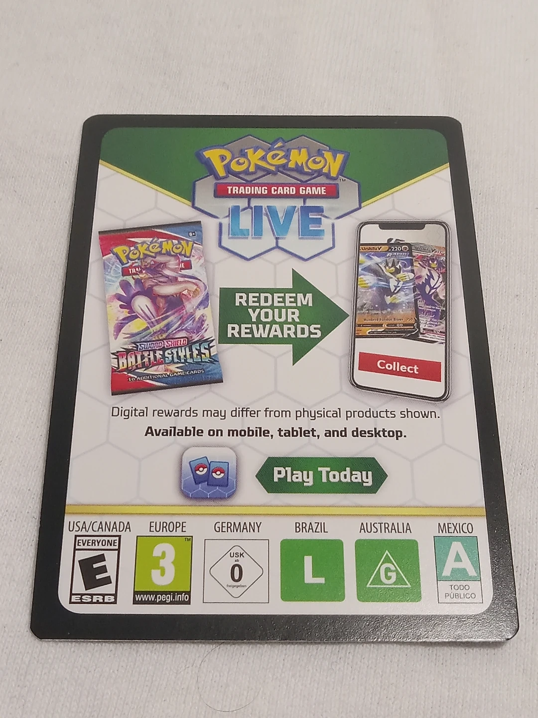 Selling a set of 5 Pokemon Trading Cards and 1 TCG live Code Card.