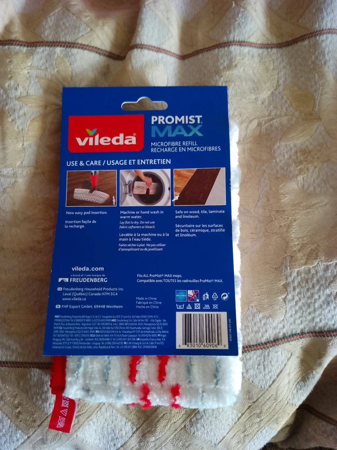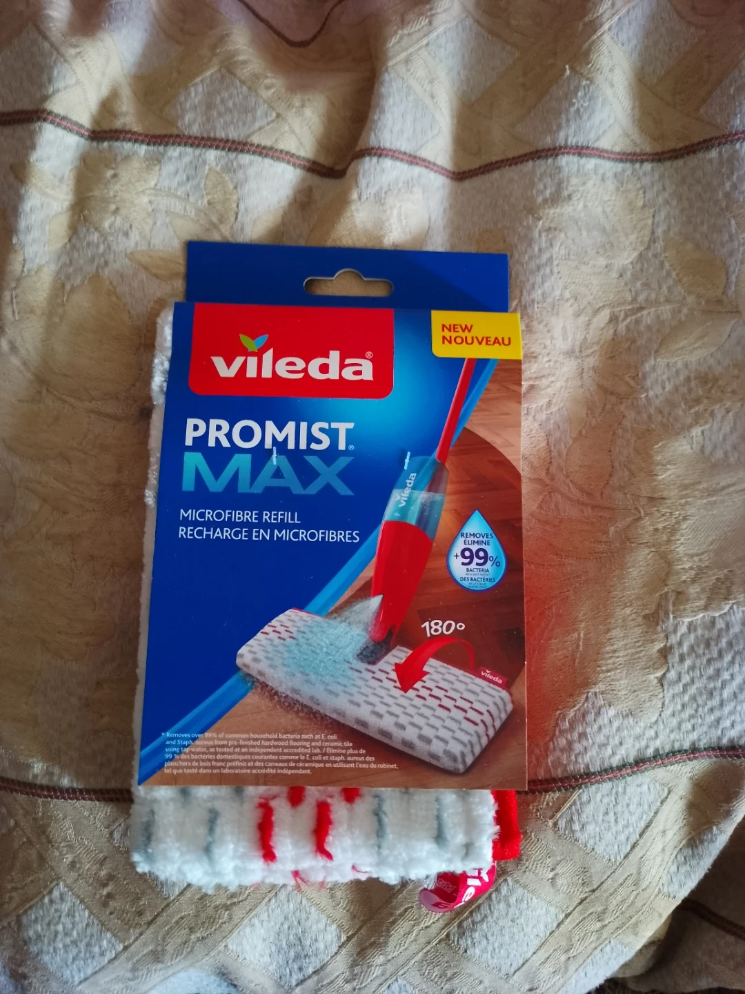 I have a new Vileda ProMist MAX microfibre refill for sale! It removes over 99% of bacteria with just water. It's safe to use on wood, tile, laminate, and linoleum. Fits all ProMist MAX mops. Compatible avec TOUTES les vadrouilles ProMist MAX