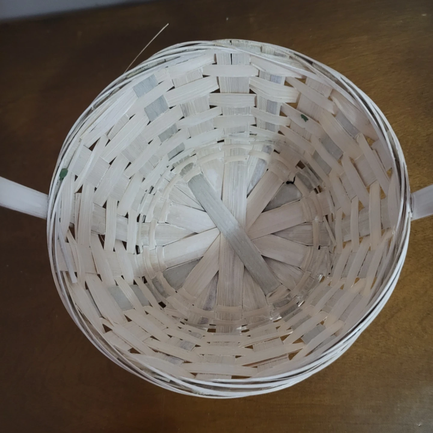 Selling a woven basket in great condition! It's perfect for storage or decoration. The basket is a light colour, possibly white or off-white, and has a handle for easy carrying