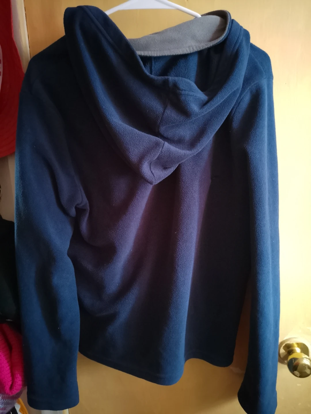 Cozy Jordache fleece hoodie in a nice navy blue colour! It's a size medium and in great condition. Perfect for layering or just lounging around the house