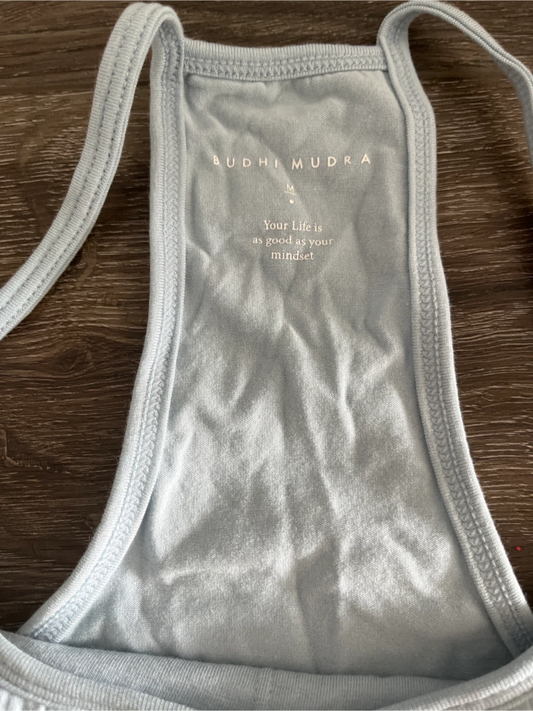 Selling a Budhi Mudra tank top in a lovely light blue colour! It's in great condition and is a size medium. Perfect for yoga or everyday wear!