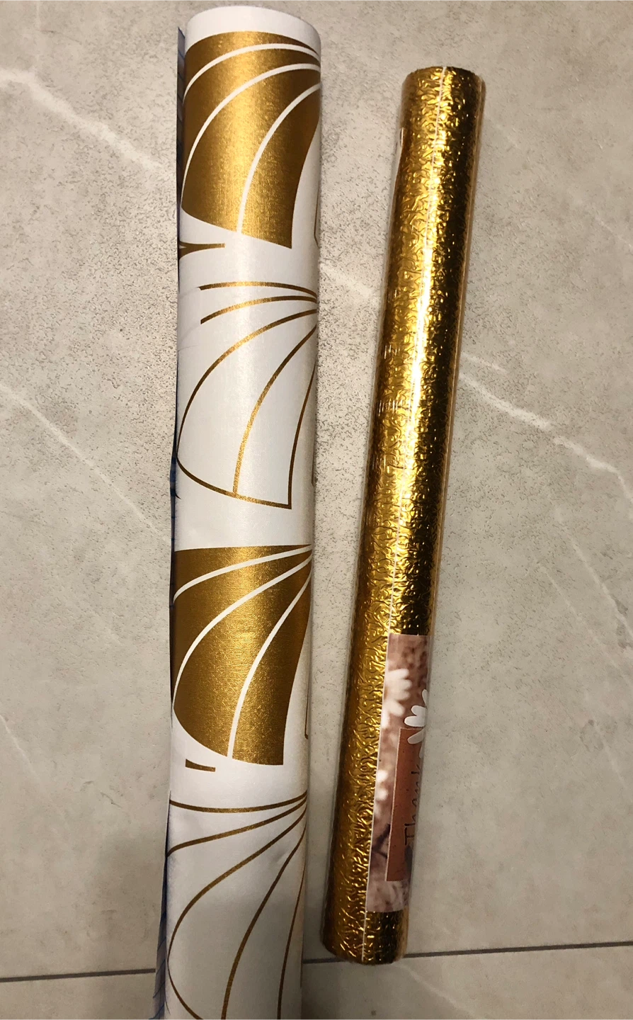 *Large Peel & stick roll, white with a gold pattern.