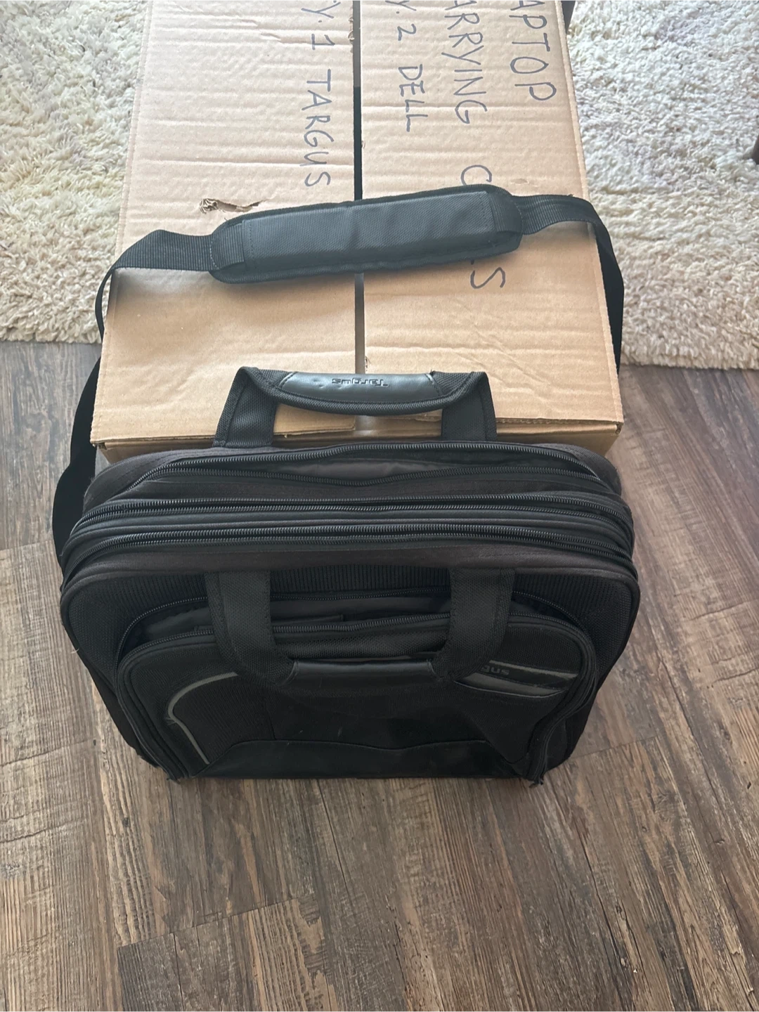 Selling a black Targus laptop carrying case. It has 4 zippered compartments. It's in great shape and ready to go! Perfect for carrying your laptop and accessories safely and stylishly