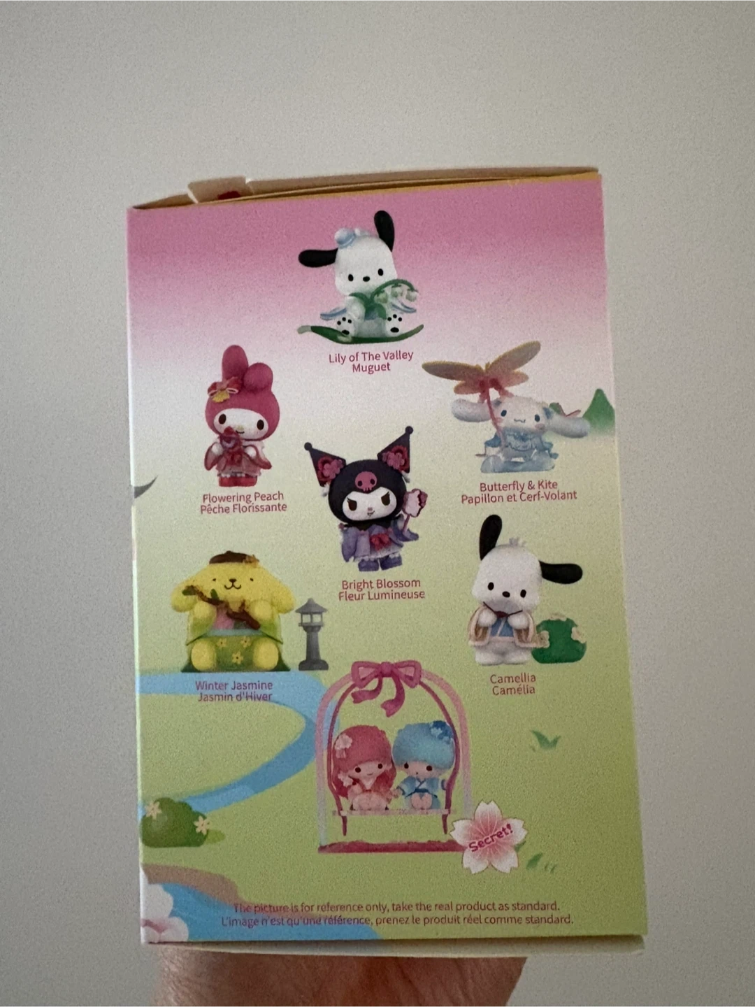 Selling a brand new Hello Kitty and Friends Figure Blind Box! This is the Rhyme Flower series. It includes one random figure from the set. It's still sealed in its original packaging, so it's a fun surprise to open.