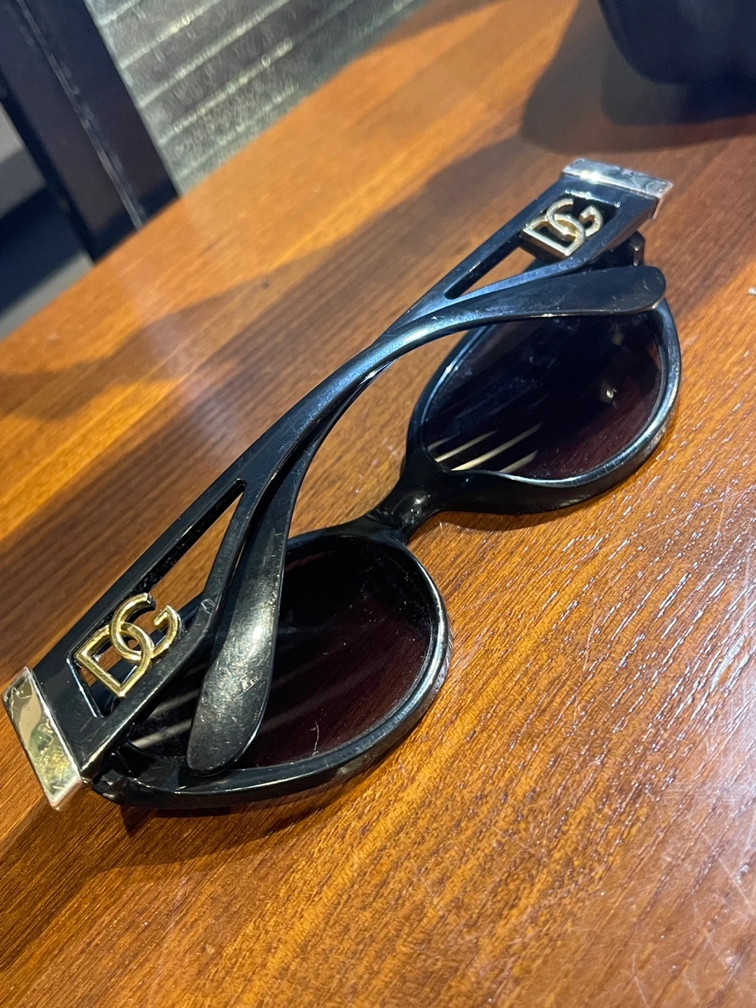 Selling a pair of Dolce & Gabbana sunglasses in black. They feature the classic DG logo on the sides. Stylish and in great condition! Have been worn and are used