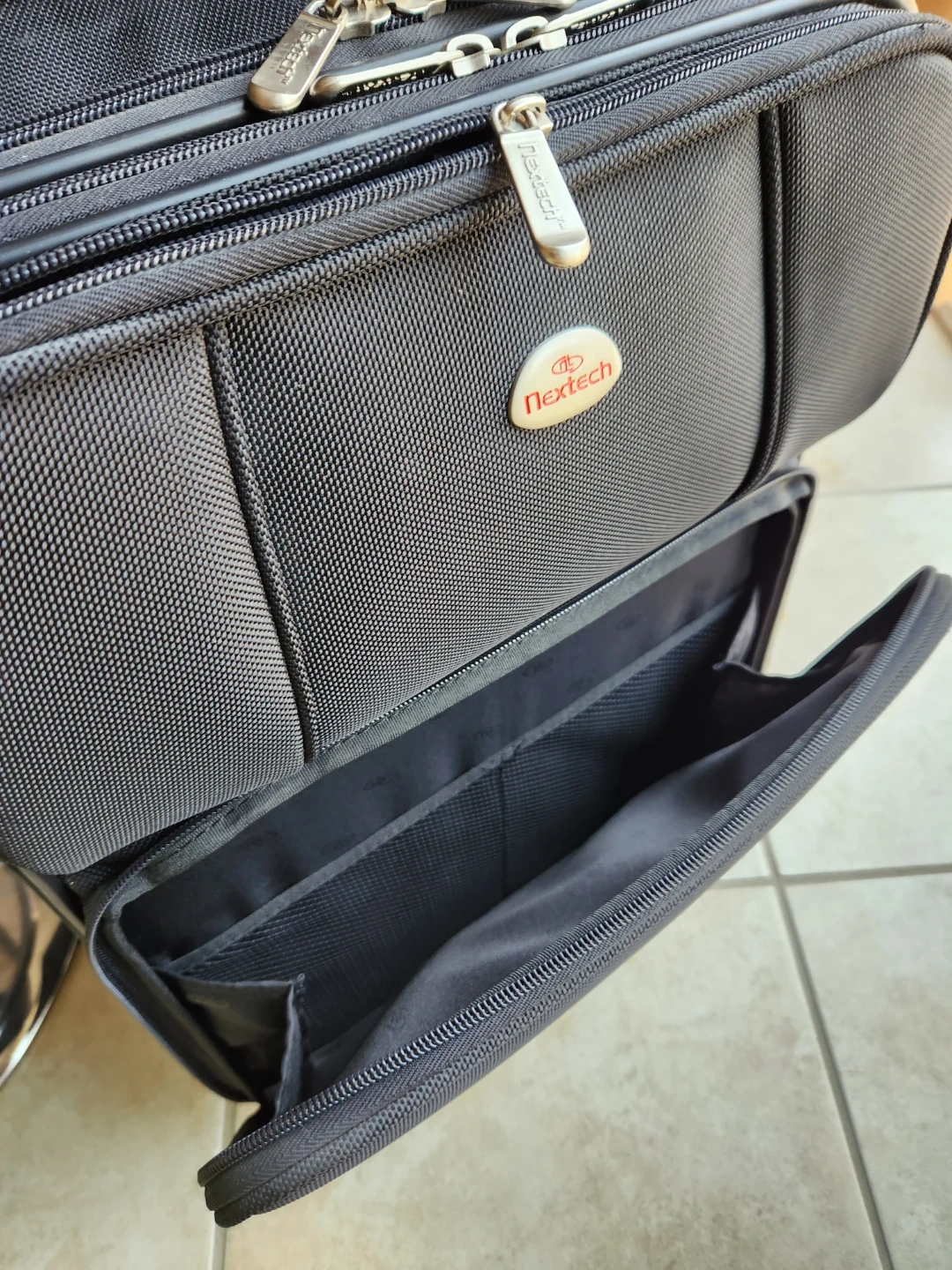 ** An exterior front pocket that fits legal size documents and two quick access side pockets.
