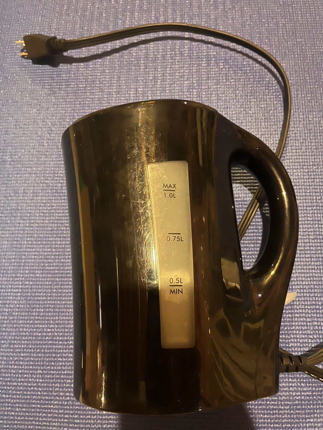 Selling a black electric kettle! It can hold up to 1.0L of water, with clear markings for 0.5L and 0.75L. It's in good condition and ready for a new home!