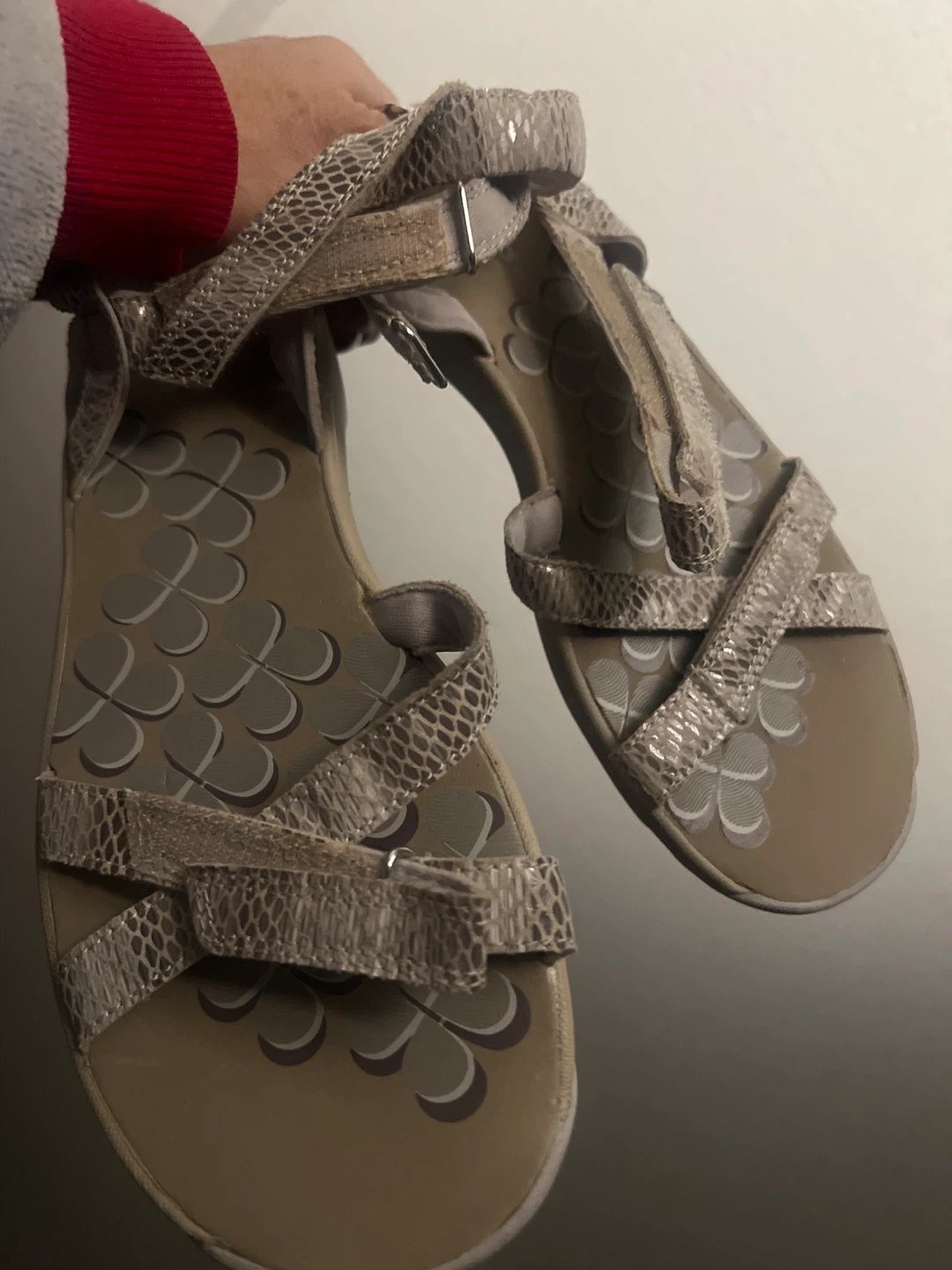 Selling a pair of Clarks women's sandals in size 8.5. They are in good condition and feature a stylish design. Perfect for everyday wear!