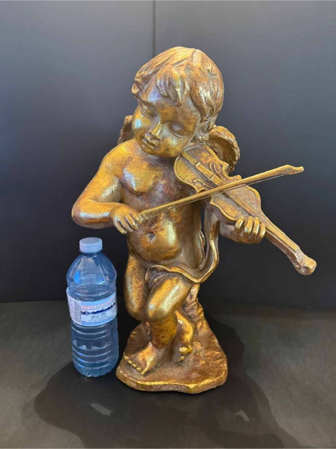 Add a touch of heavenly charm to your home with this set of three angel figurines, perfect for collectors or anyone who loves angelic decor. This set includes a larger angel playing the violin, standing approximately 16 inches tall, and two smaller cherub which you can hang on the wall, angels in a reclining pose, each about 13 inches long•