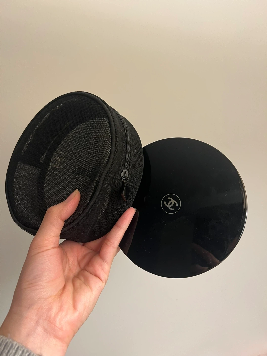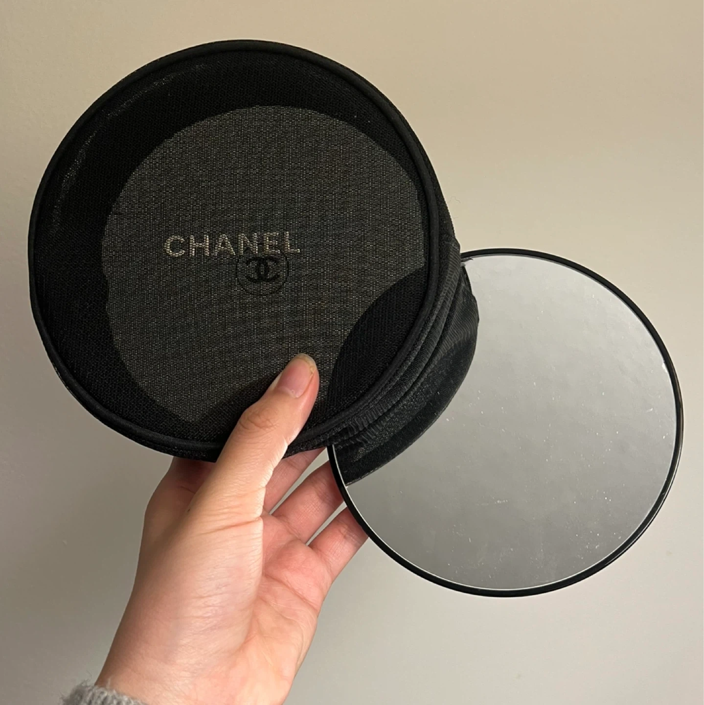 Chanel Mesh Cosmetics/Toiletry Bag and Round Magnifying Mirror
