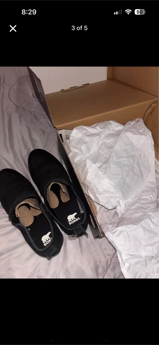 Sorel women's black ankle boots, size 11. These boots are in great condition and come with the original box. They have a stylish design and are perfect for everyday wear!