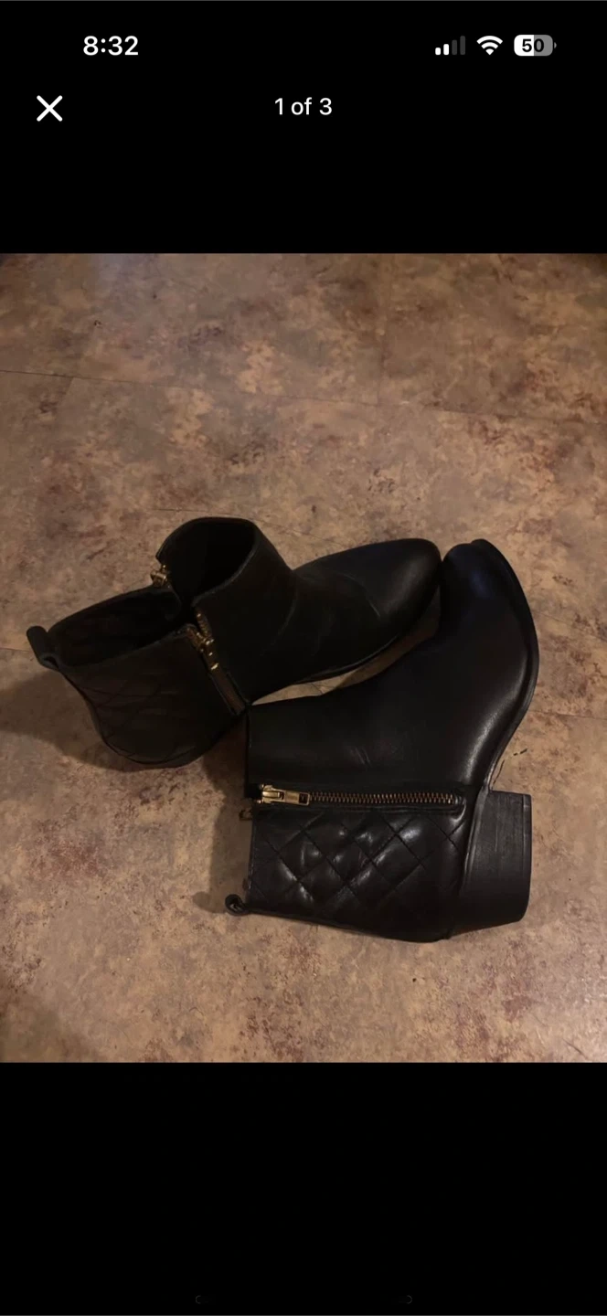 Selling a pair of Steve madden black leather ankle boots in size 10. They have a stylish zipper detail and are in good condition. Perfect for adding a touch of sophistication to your wardrobe!