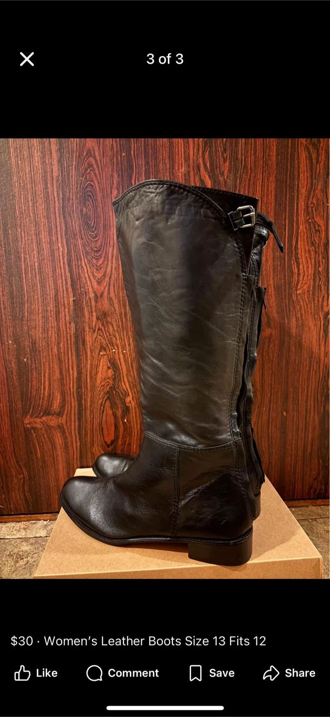 1 / 31 / 3Buy & SellLeather Riding Boots, Women's Size 13Leather Riding Boots, Women's Size 13$25Women's leather riding boots in size 13. They appear to fit a size 12. The boots are black and made of leatherConditionLike newBrandVero CuoioWHERE TO MEETCheck LocationView MapSELLERverifiedAshWishing Well Acres43736 reviews1 chats·3 favorites·41 viewsSEND CHAT TO SELLERHi Ash! I’m interested in your listing.Hi Ash! I’m interested in your listing.Get the Karrot app to chatSign In to chat