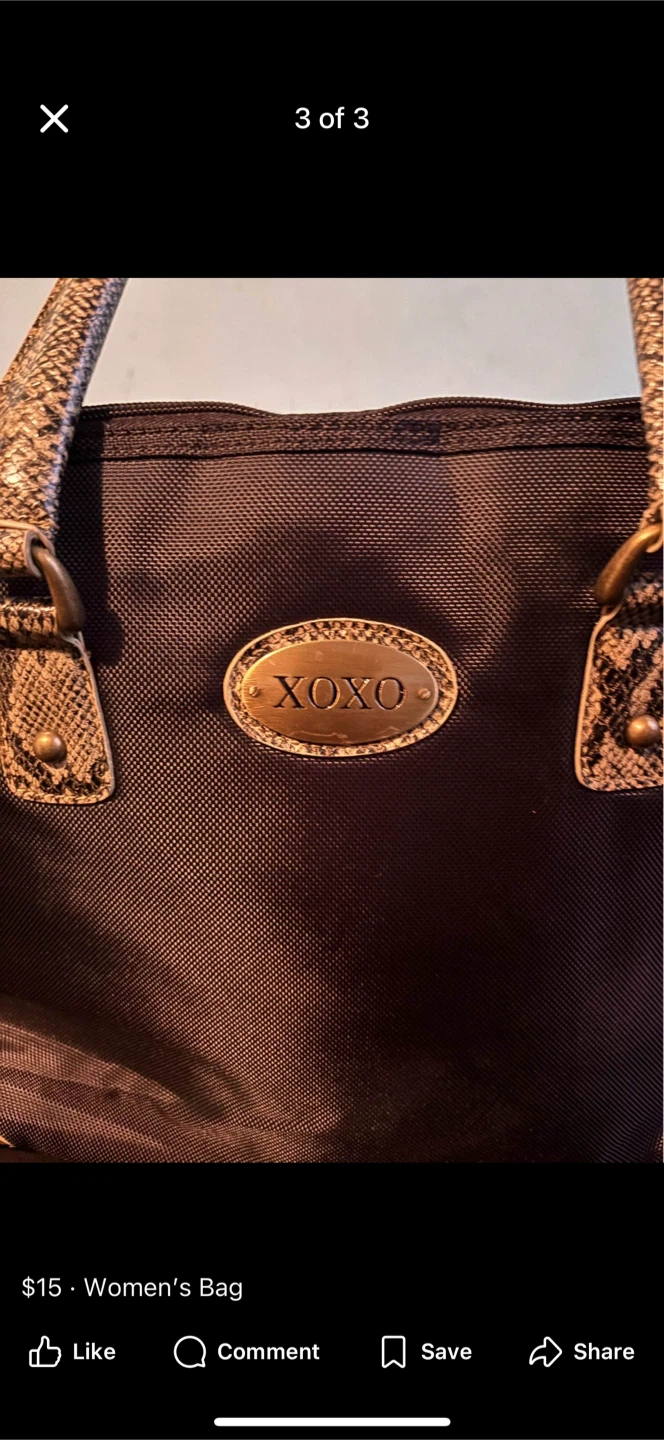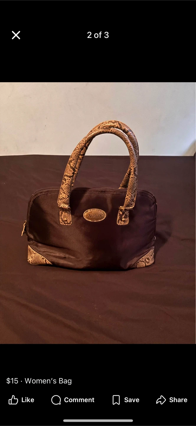 This is a lovely brown women's bag from XOXO. It has a unique snakeskin-patterned handle that gives it a stylish touch. A great accessory to complete your look!