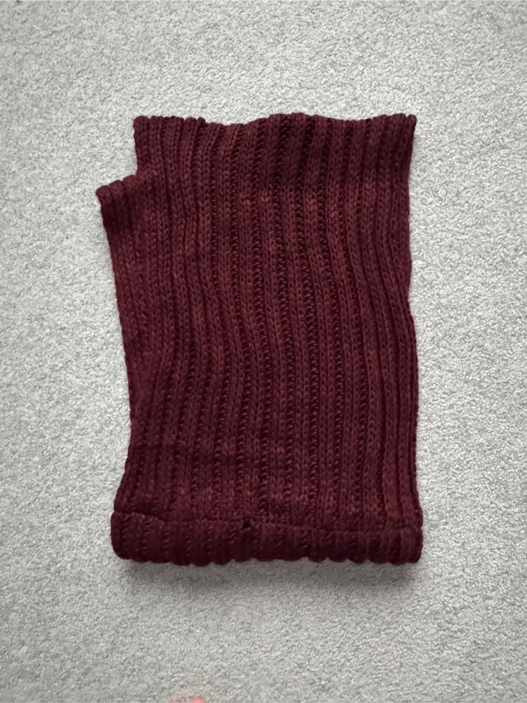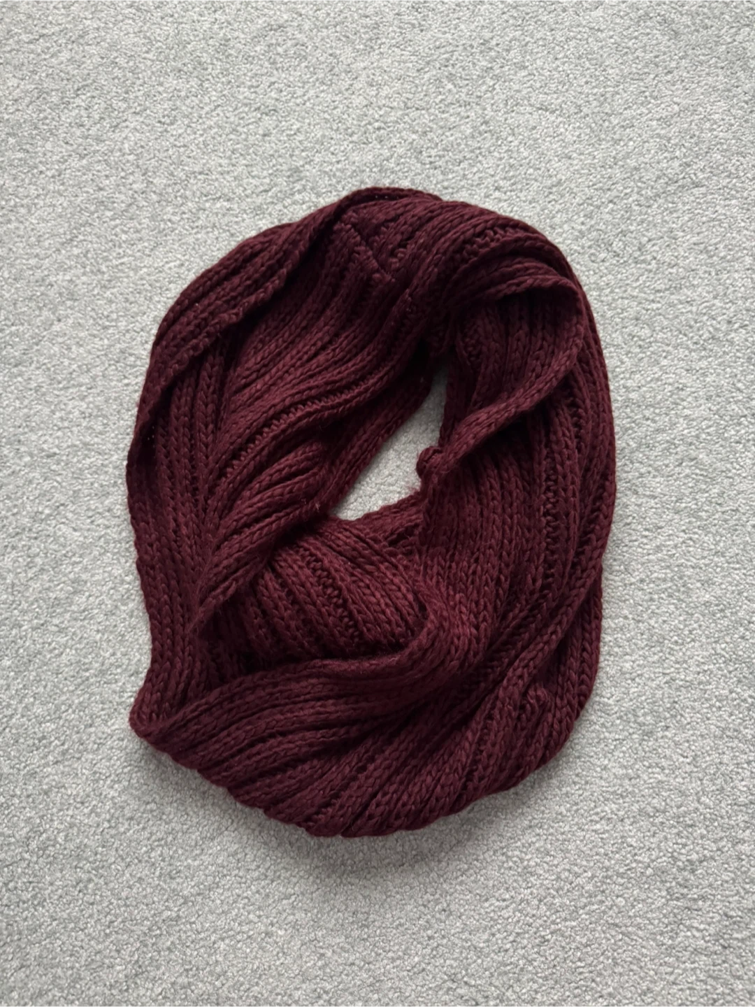 Cozy burgundy knit infinity scarf! Perfect for adding a touch of warmth and style to any outfit. It's in great condition and ready for a new home