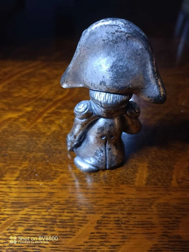 Check out this vintage Napoleon figurine! This collectable figurine is in fair condition, showing it's age with a unique patina that only time can create. It's a charming piece that adds a touch of history and character to any collection. This pewter figurine is made by Peltro in Italy.