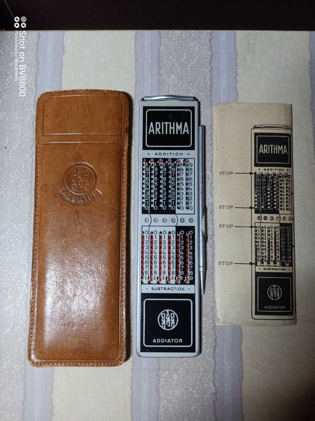 Check out this vintage Arithma Addiator, a mechanical calculator from a bygone era! This unique piece is in used condition but comes complete with its original case and instructions. It's a fascinating collectible for anyone interested in the history of computing or vintage office equipment. * Original Case * Instructions Included It is in great shape for its age. And yes, if the ad is up, it's still available!
