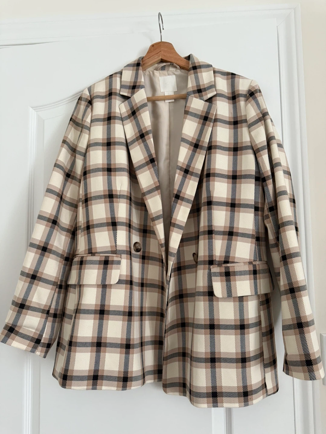 Selling a stylish H&M blazer with a classic plaid pattern! It's in great condition and perfect for adding a touch of sophistication to any outfit. A great addition to any wardrobe!