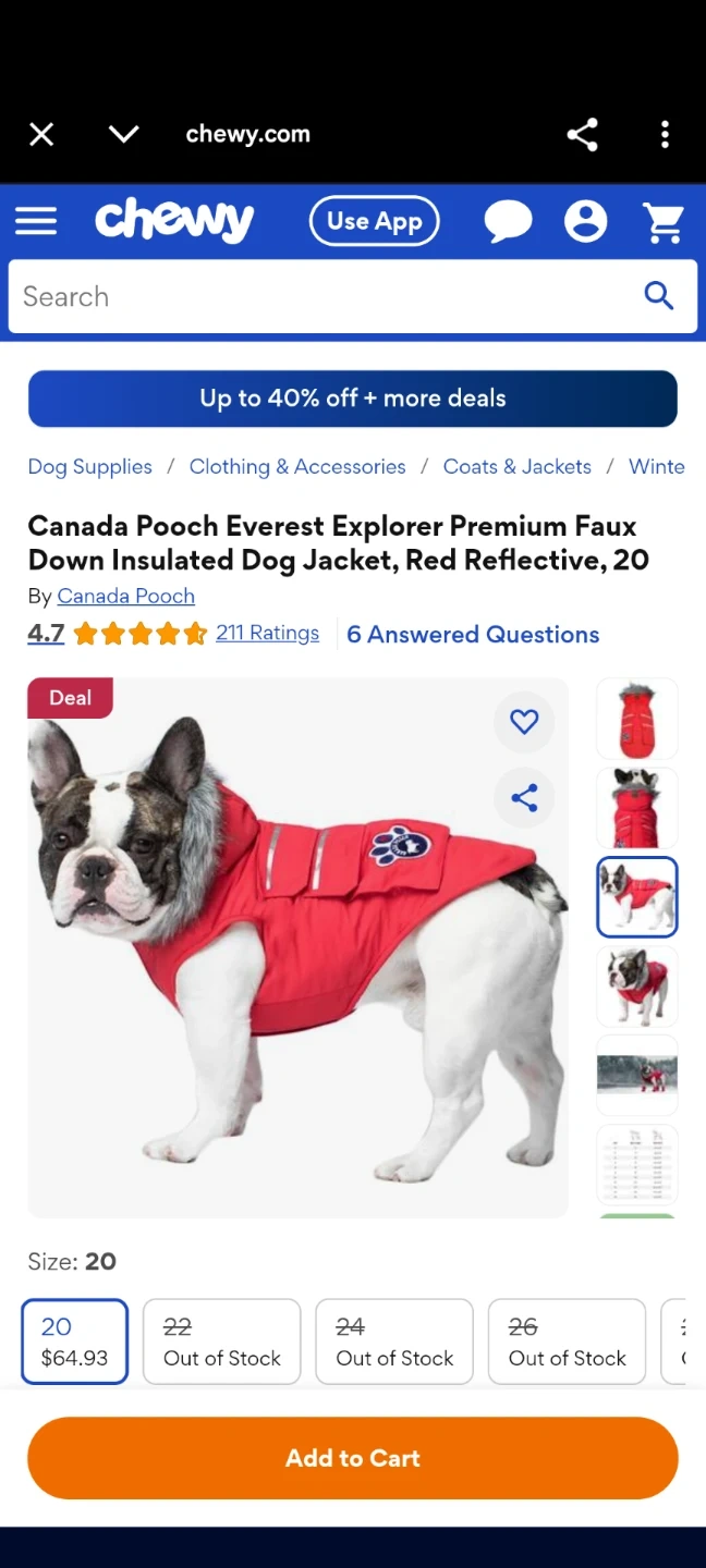 Canada Pooch Everest Explorer Premium Faux Down Insulated Dog Jacket, Red Reflective