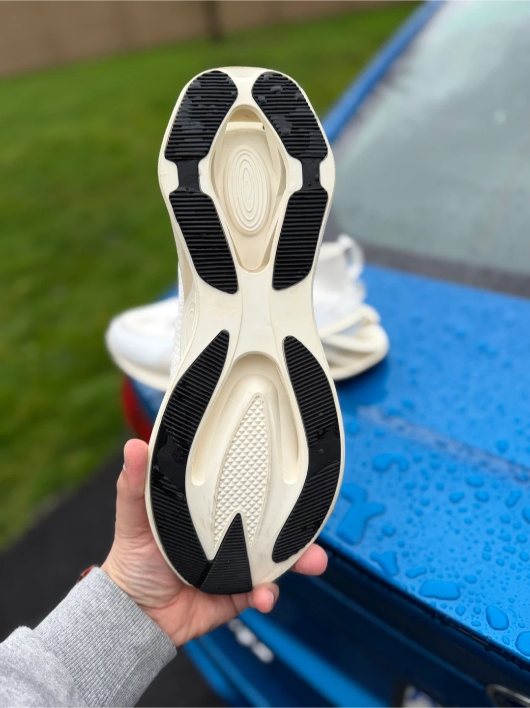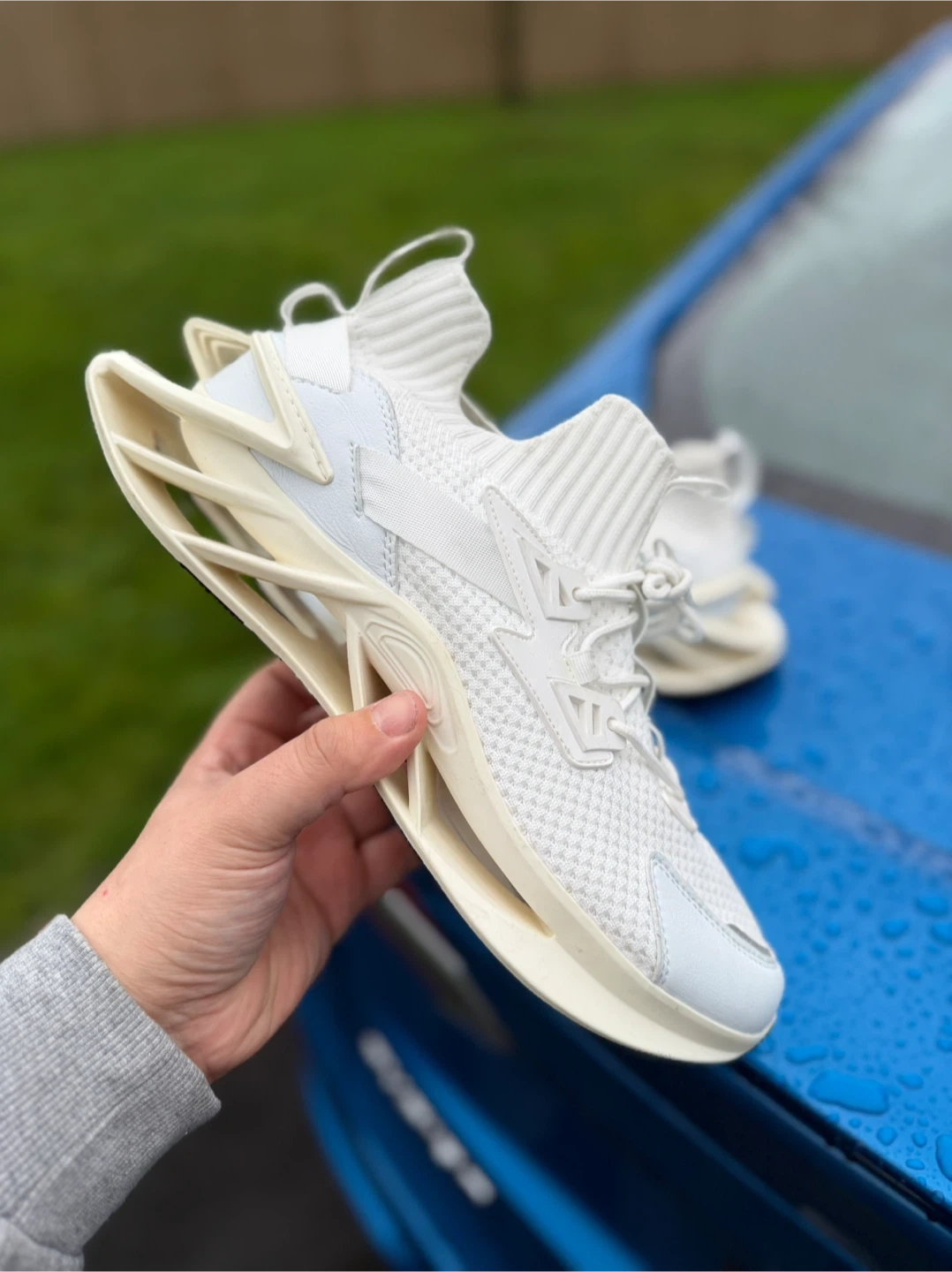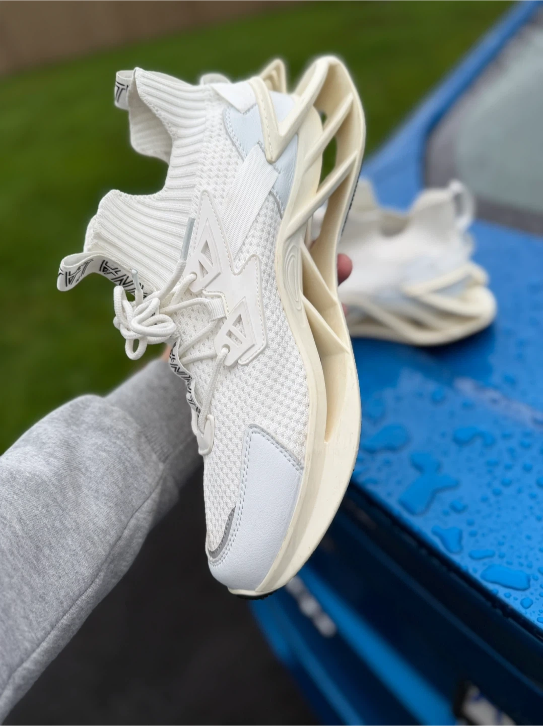 Selling a pair of CALPINA running shoes in white. These shoes have a unique design and look to be in great condition. Perfect for running or casual wear!