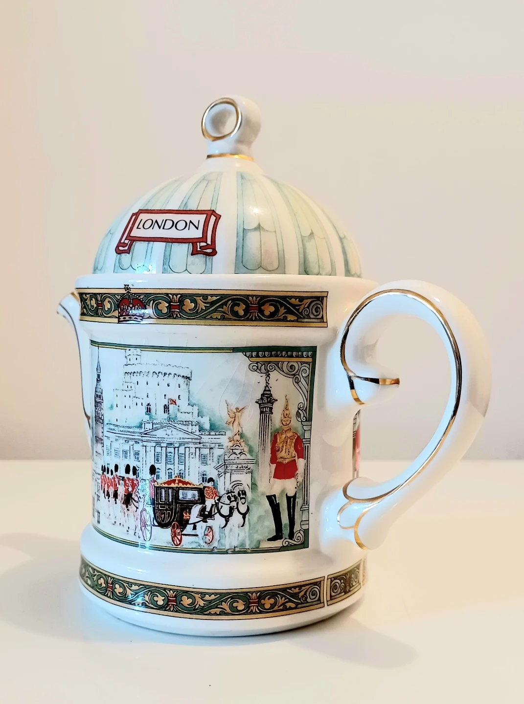 Vintage,New Sadler London Heritage Teapot that features detailed London scenes. The teapot was for display only , it is in Excellent condition,with Original Sticker and is a charming collectible.