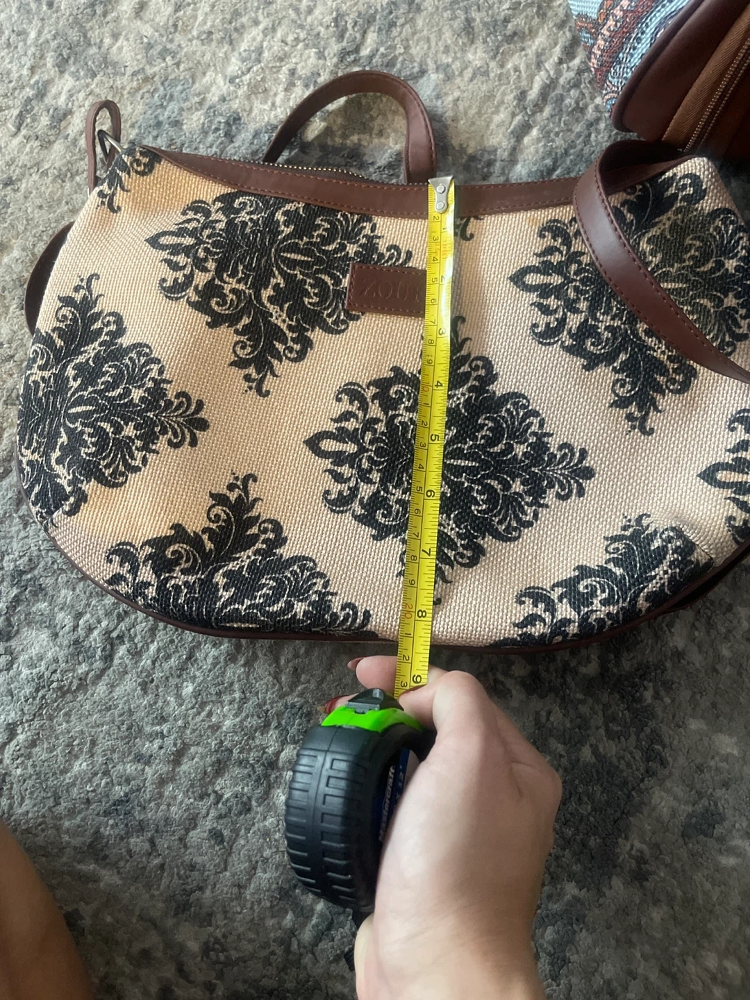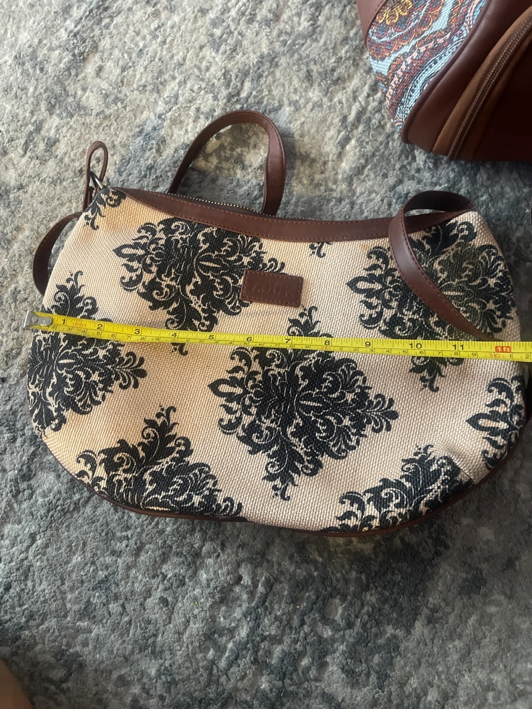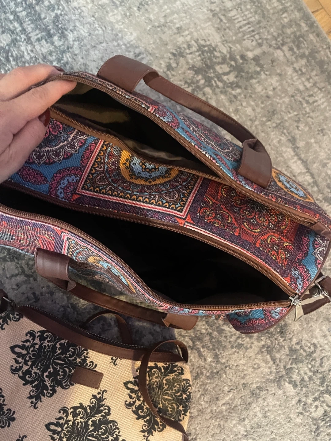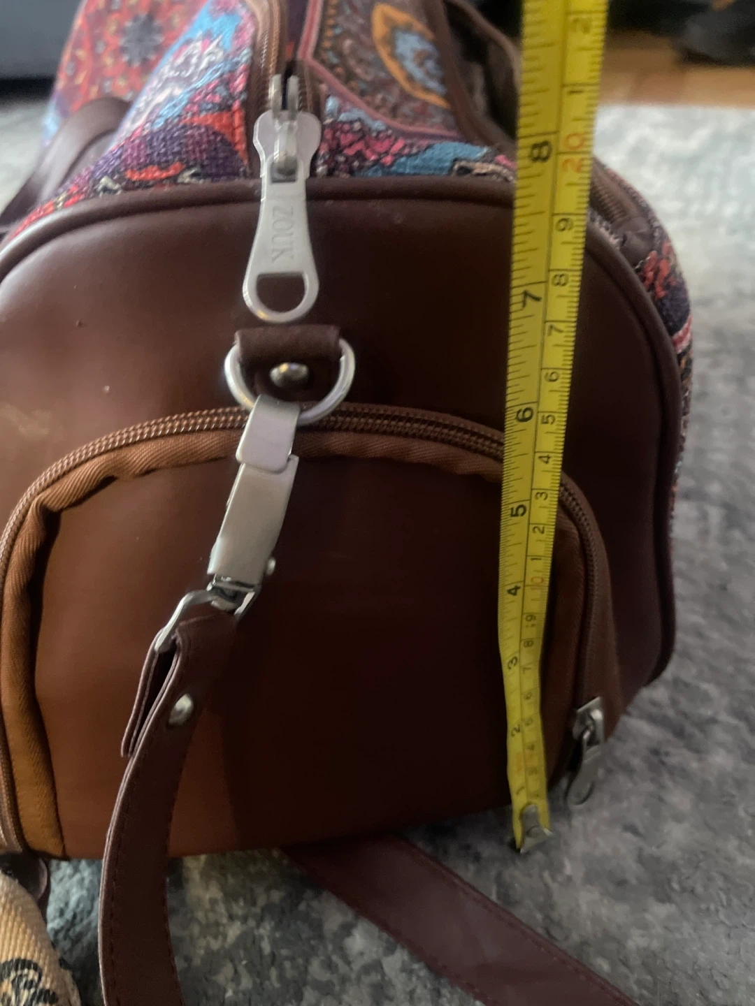 Selling a Zouk handbag and weekender bag set. The handbag is approximately 12 inches in length. The weekender bag is approximately 17 inches in height.