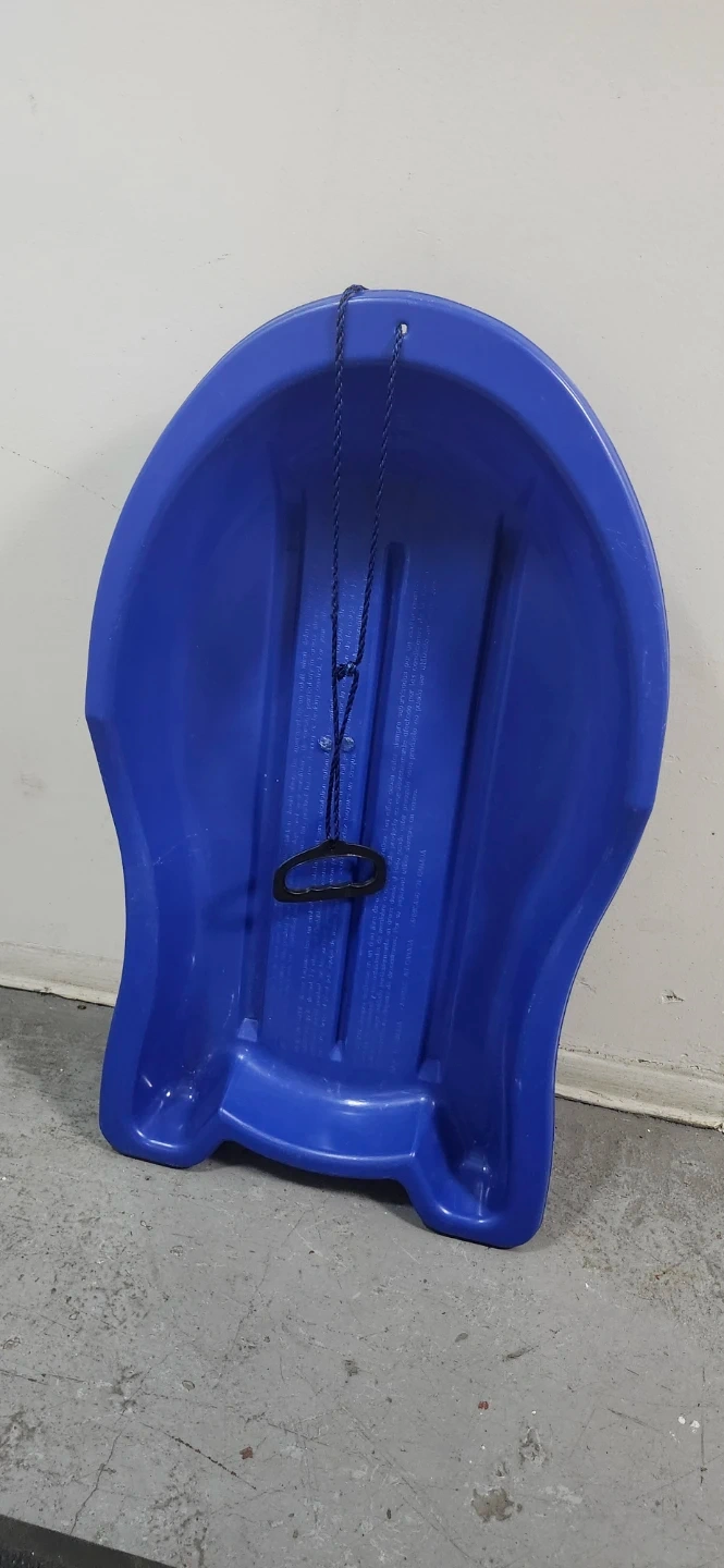 Selling a blue plastic toboggan sled! It's in great shape and ready for some winter fun. Perfect for kids and adults alike, this sled will provide hours of entertainment on the snowy hills