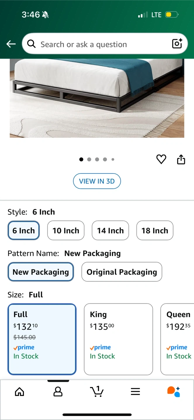 Selling a Zinus Joseph 6 Inch Metal Bed Frame in full size. It's a minimalist platform bed frame with wood slat support. Easy to assemble and no box spring is needed. It's super sturdy with a 700 lbs capacity! Originally bought for $132