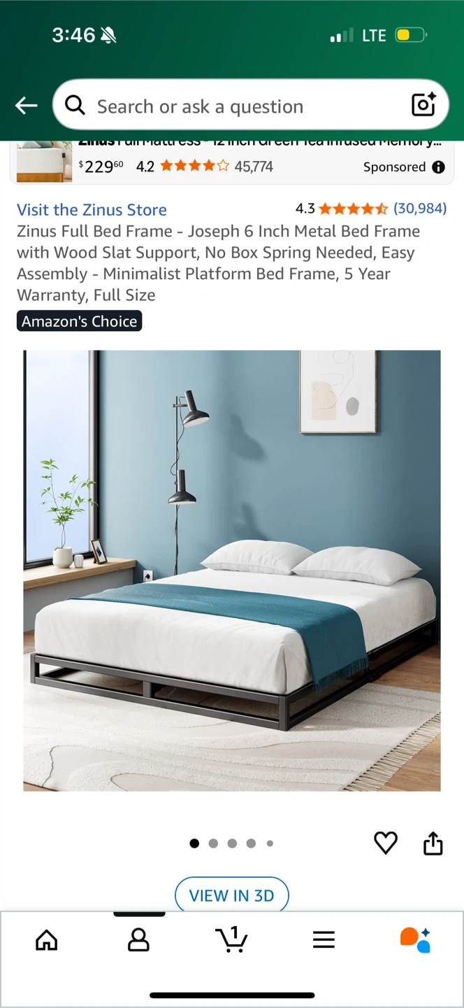 Zinus Joseph 6 Inch Full Metal Bed Frame