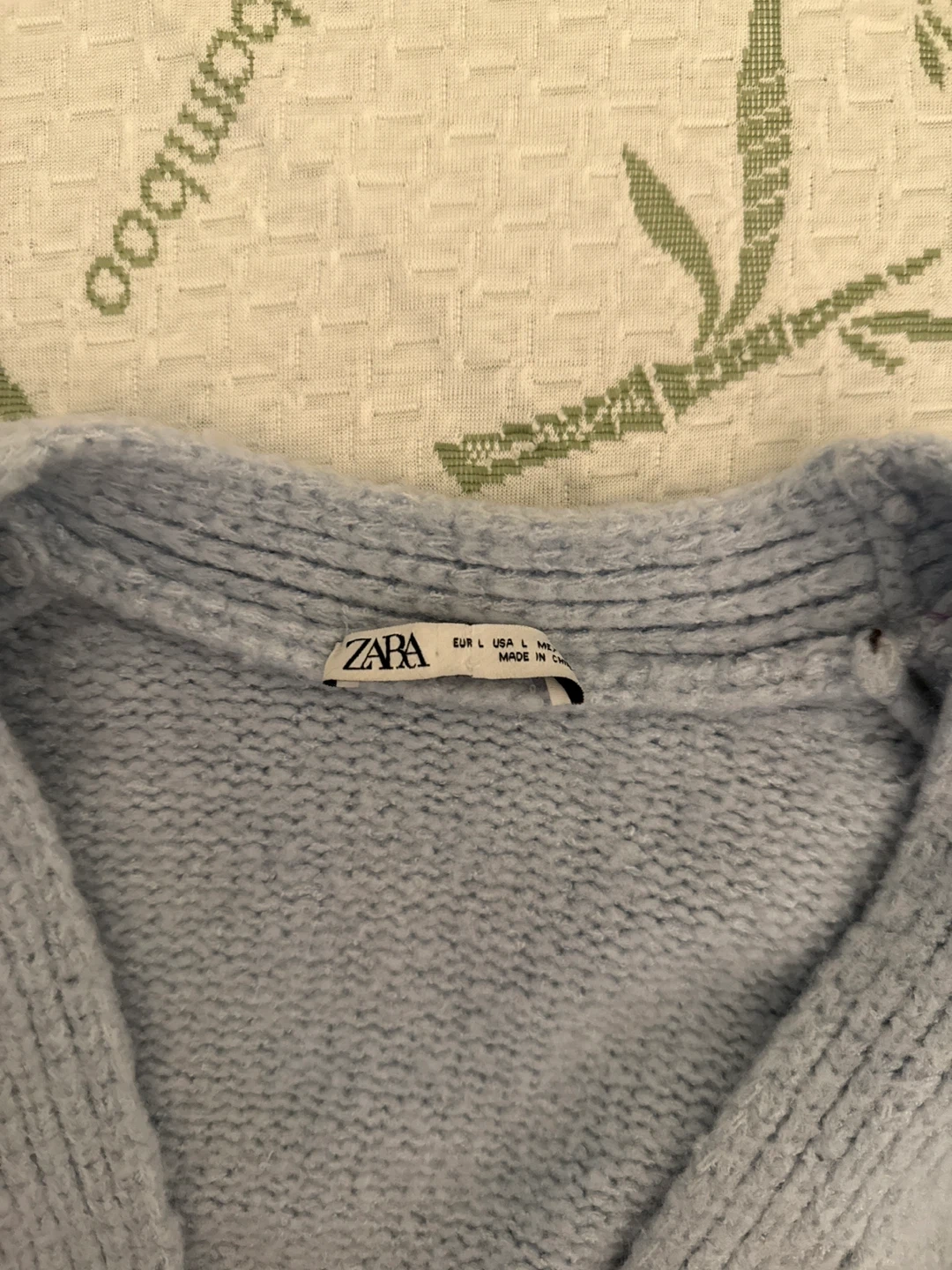 Selling a cute Zara knit cardigan and tank top set in a lovely light blue colour! The set is a size L and features sweet floral embroidery. Perfect for layering or wearing on its own as a set.
