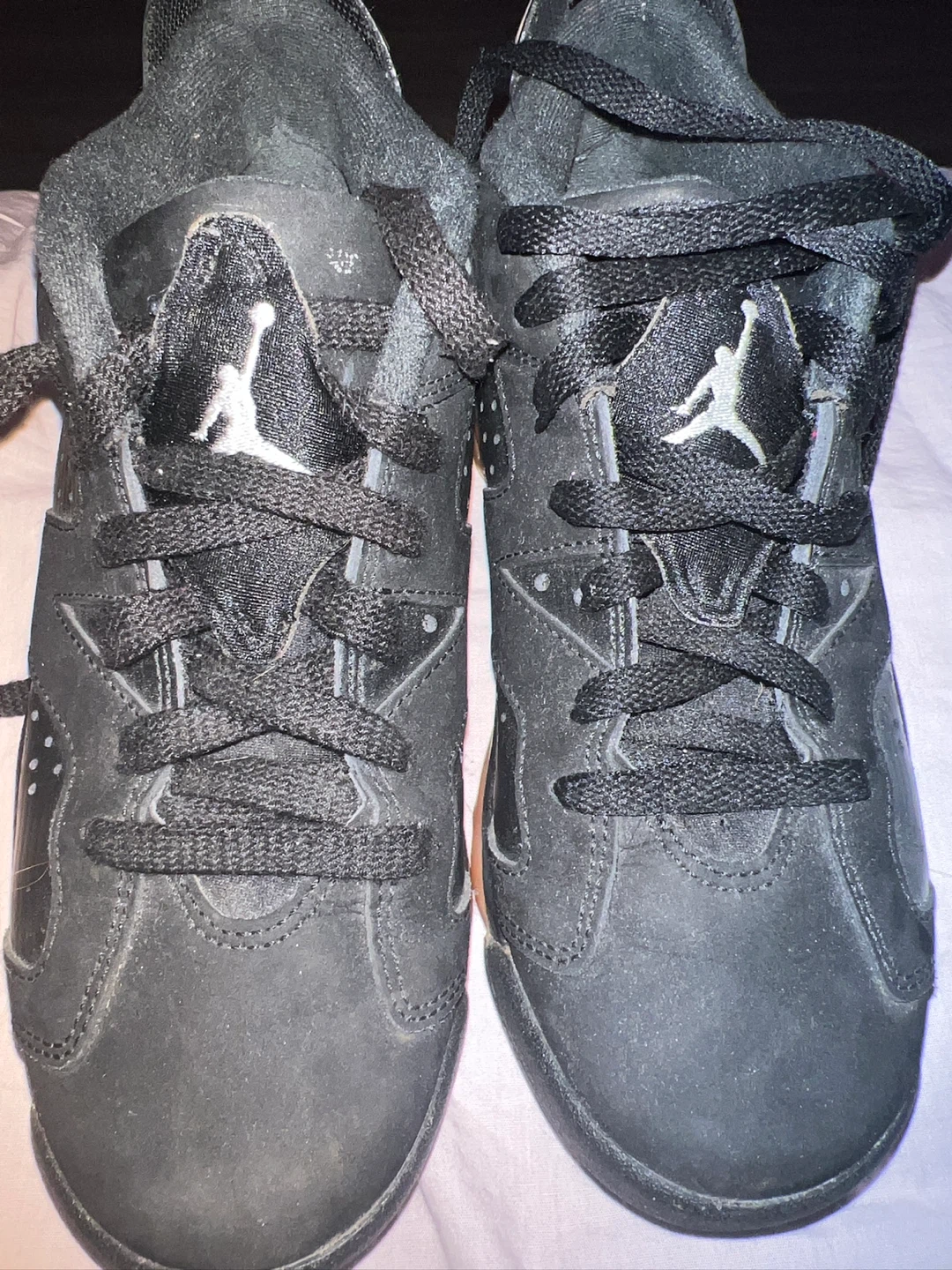 Selling a pair of youth Nike Air Jordan 6 in black! These are a size 5Y, perfect for a growing kiddo who loves basketball shoes. They've got the classic Jordan style and are ready for some more wear! Meet up