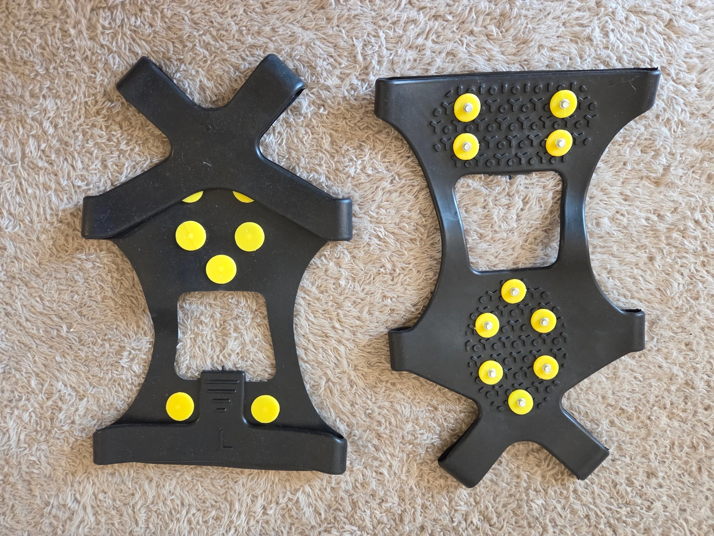 Brand-new elastic ice cleats with metal studs – perfect add-on for safer winter walks. Size L with clear “L” mark on the heel.