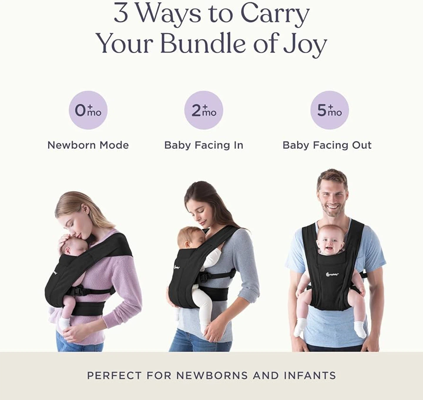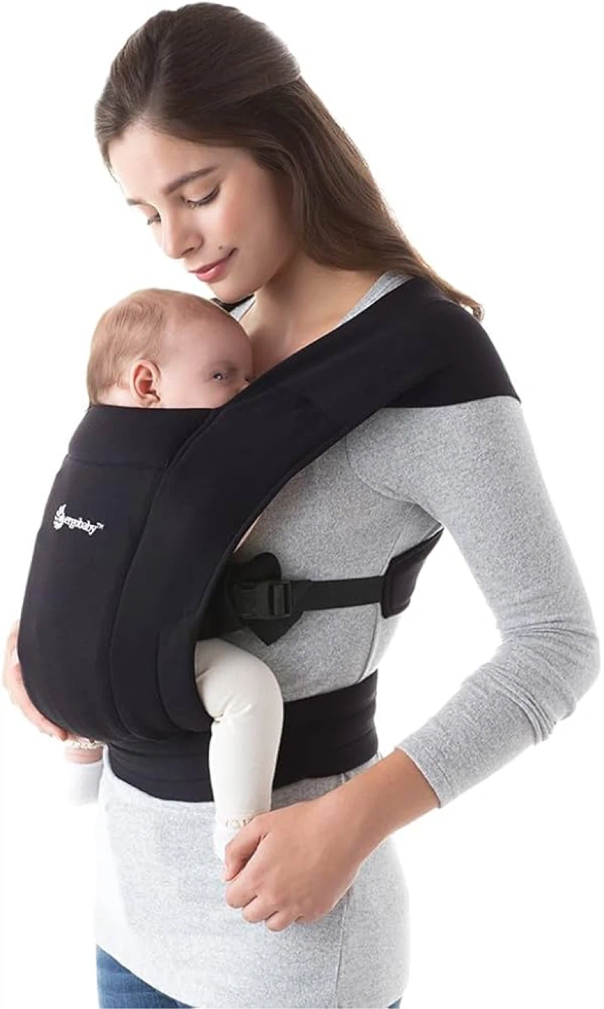 Ergobaby Embrace Cozy Newborn Baby Wrap Carrier (7-25 Pounds), Ponte Knit, Pure Black
