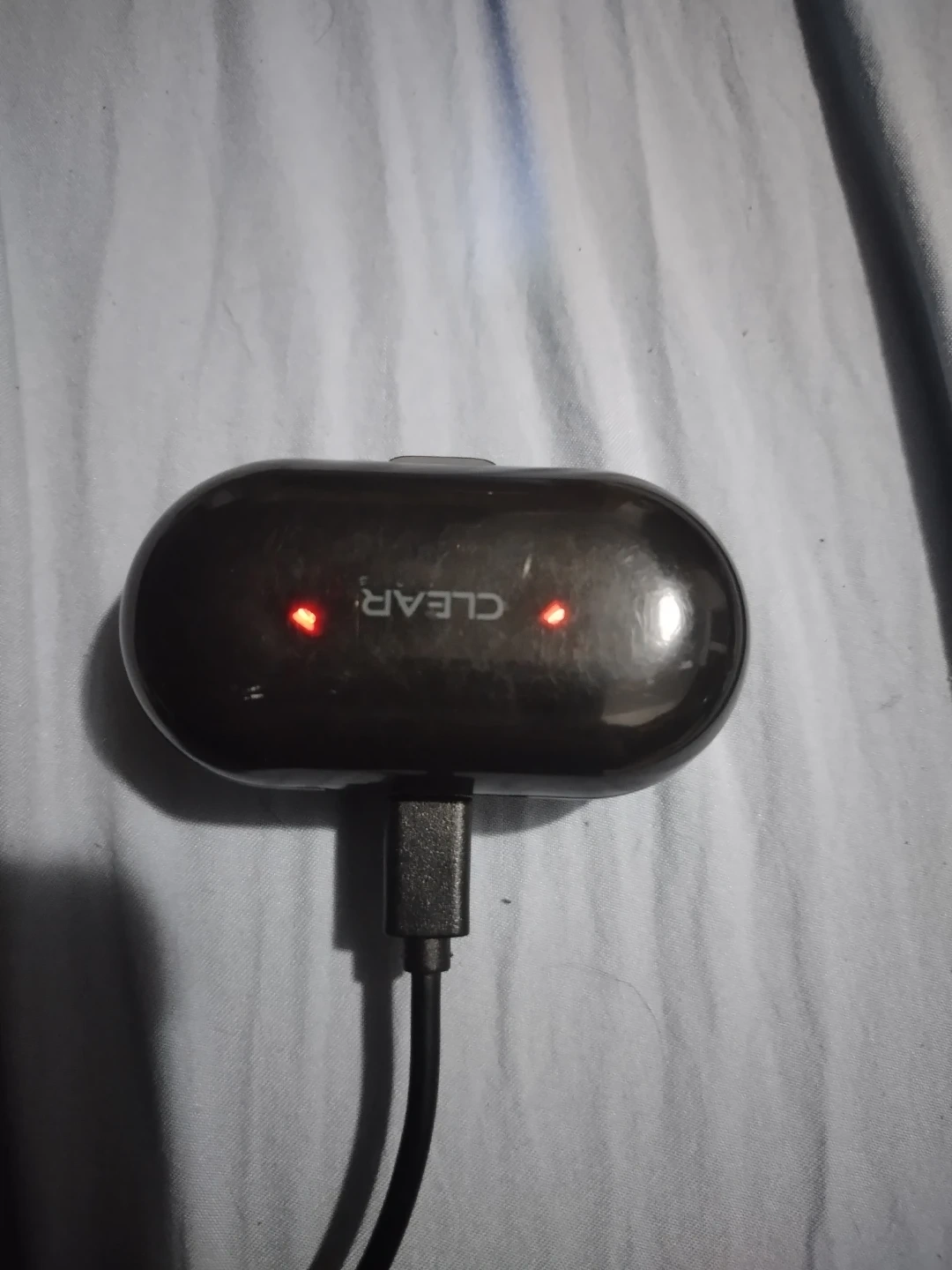 Selling a pair of Clear wireless earbuds. They come with a charging case and a charging cable. These earbuds are great for listening to music or podcasts on the go