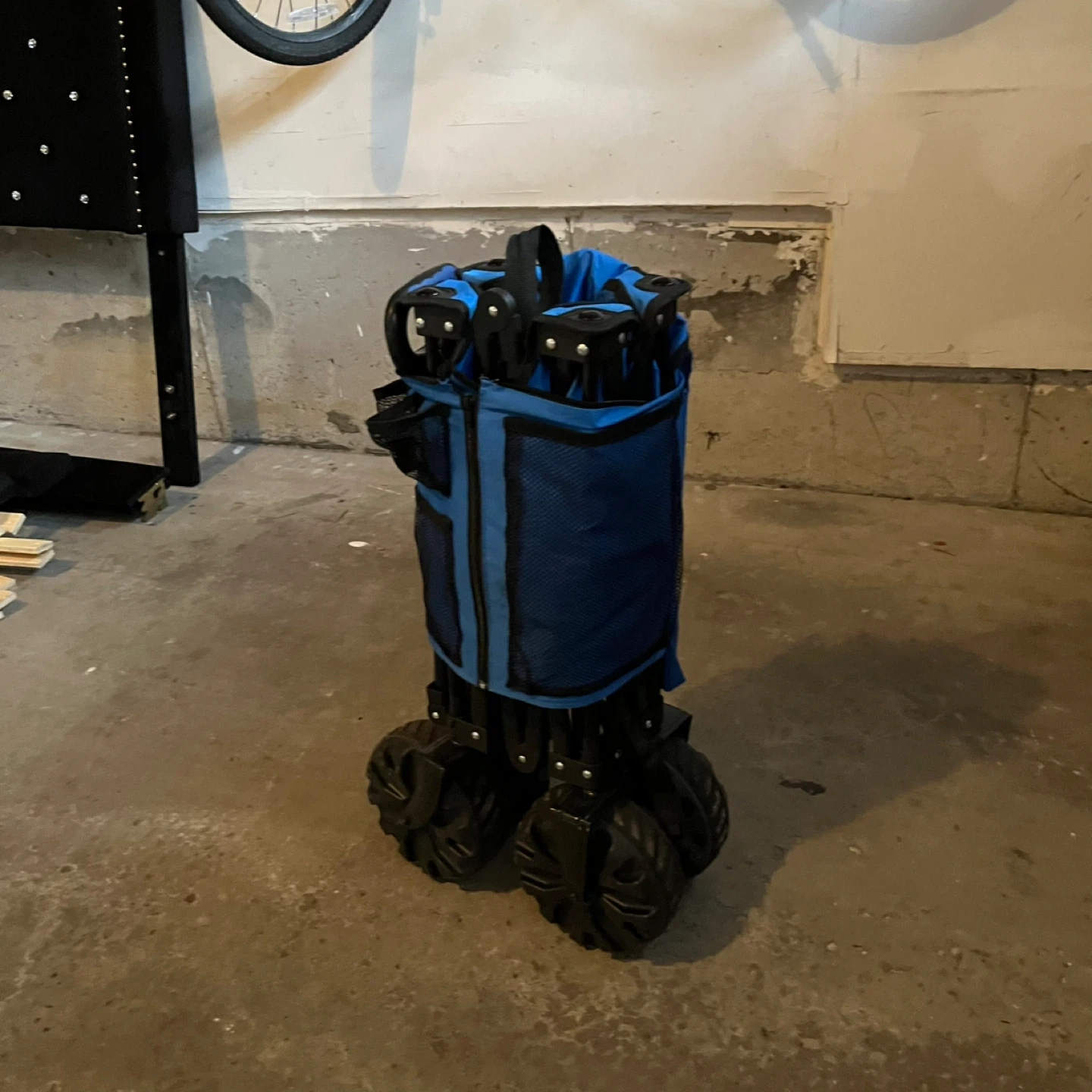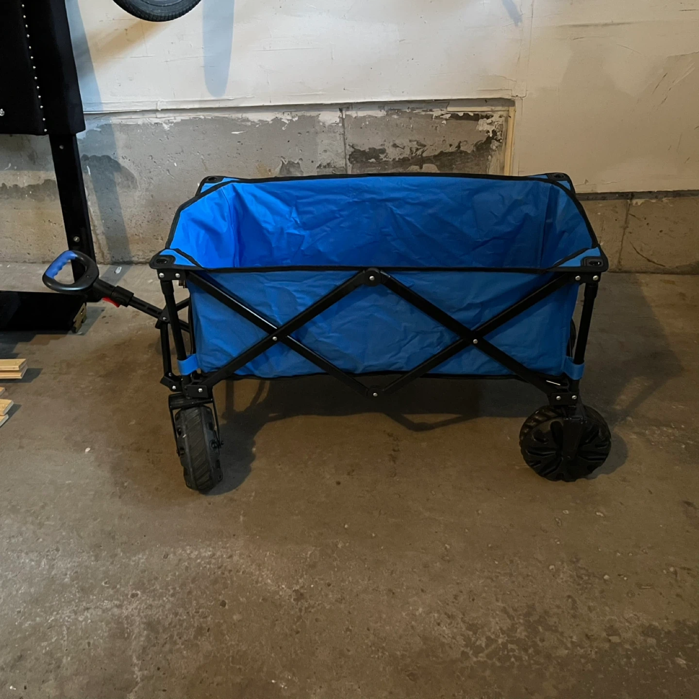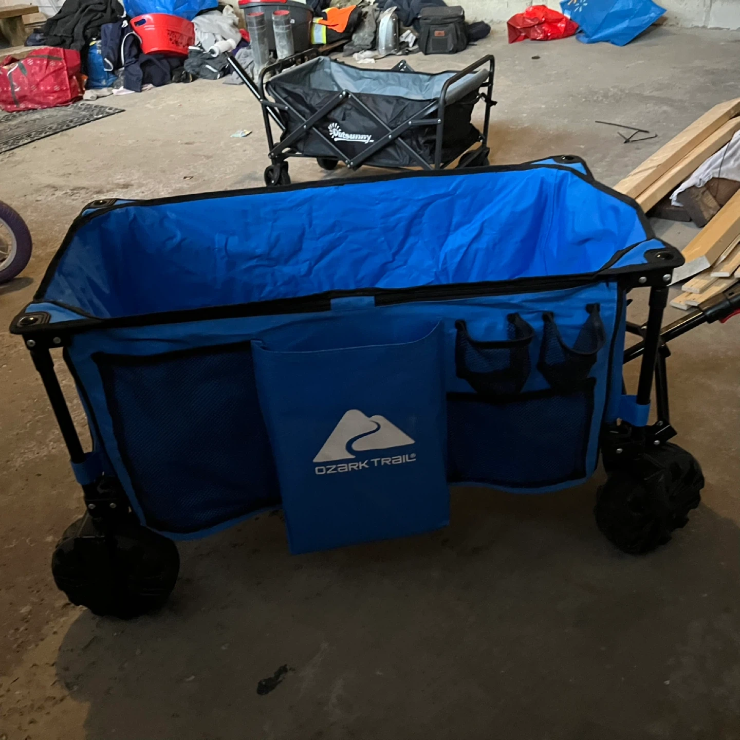 I'm selling a blue Ozark Trail collapsible wagon. It's in great shape and ready for your next adventure! This wagon is perfect for hauling groceries, camping gear, or anything else you need to move around. It folds up easily for storage and transport, making it a convenient choice for families on the go
