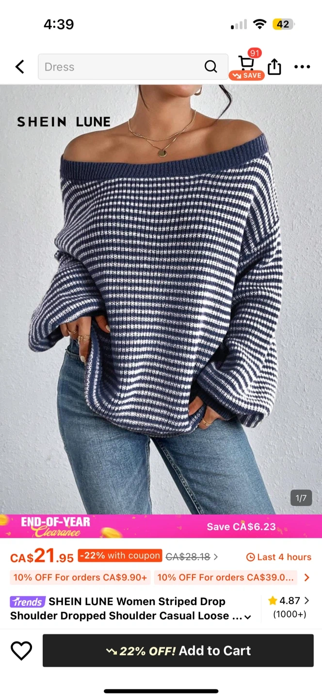 I'm selling a LUNE women's striped drop shoulder casual loose sweater. It's a really cute sweater, perfect for the cooler weather!
