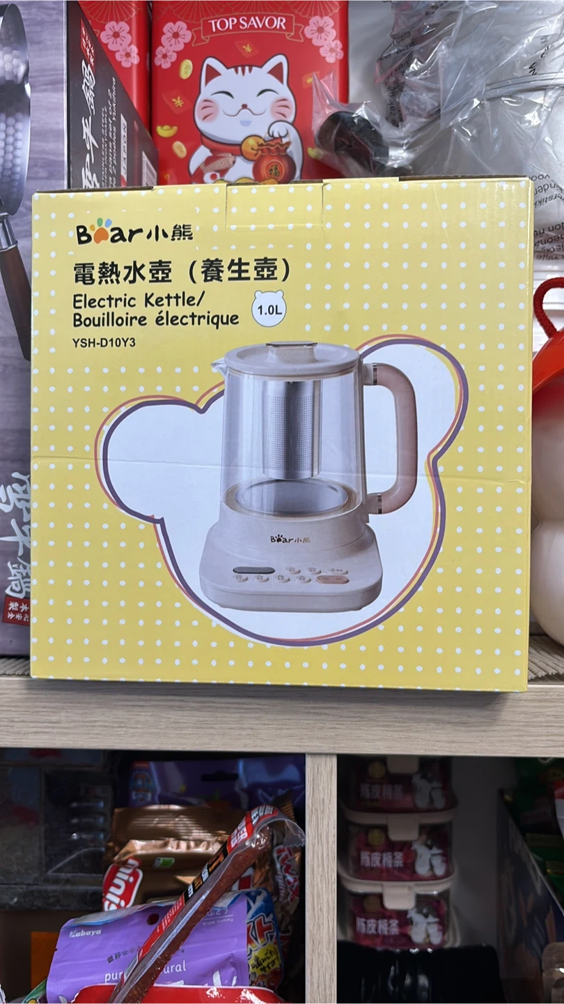 Selling a Bear electric kettle, model YSH-D10Y3. It's a 1.0L kettle, perfect for making tea or boiling water quickly. The box is included!