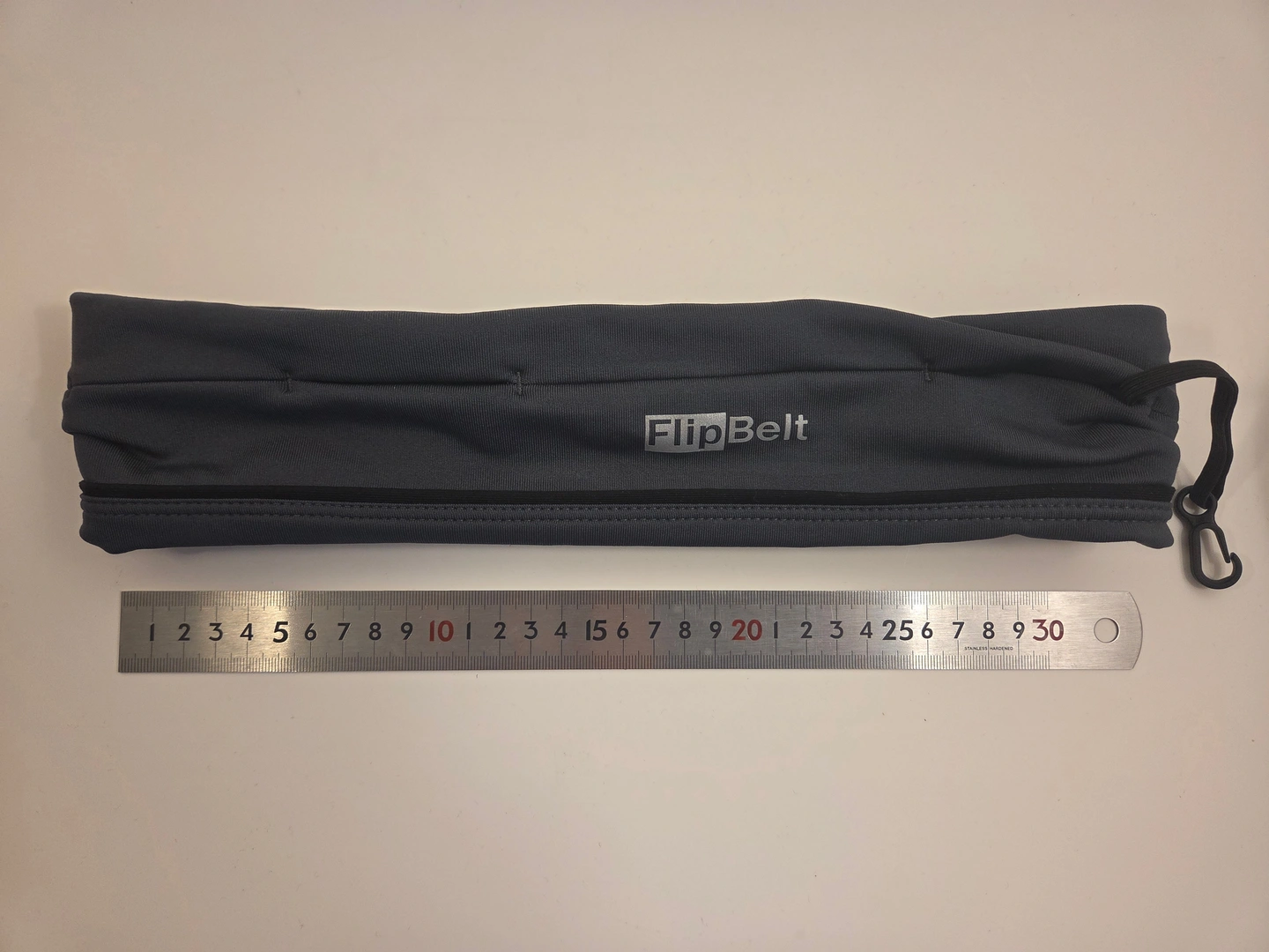– Fit/Size: size tag not visible – fits roughly 28–34 in waist thanks to stretch, comparable to FlipBelt S/M–M/L.