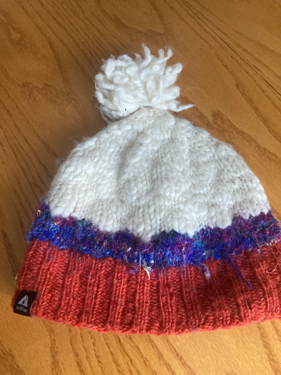 Keep cozy this winter with this cute Ambler toque! 100% wool. It's got a fun pom pom on top and a unique colour combination. Perfect for adding a pop of colour to your winter wardrobe and keeping you warm on chilly days