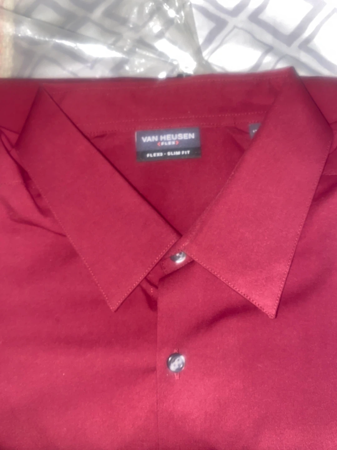 Van Heusen Flex3 Slim Fit shirt in size XL. The shirt is a nice burgundy colour and appears to be in good condition!
