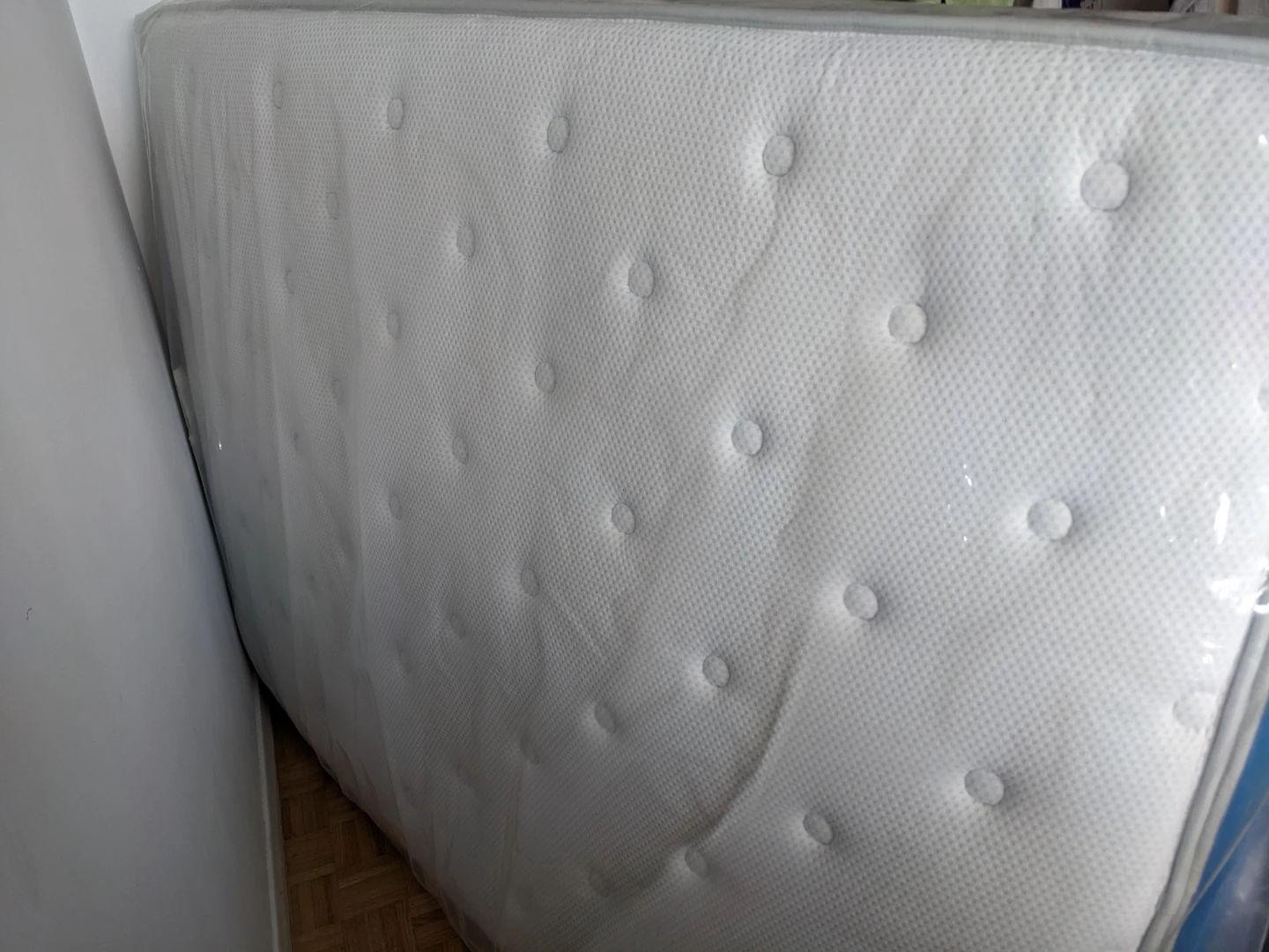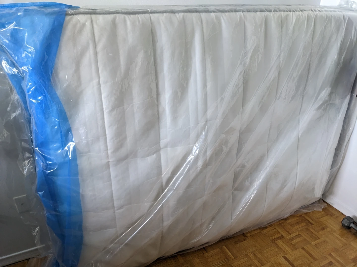 Like the title suggests, it's a new mattress. Plastic cover that it was shipped with was opened but was never removed.